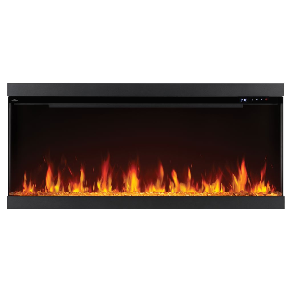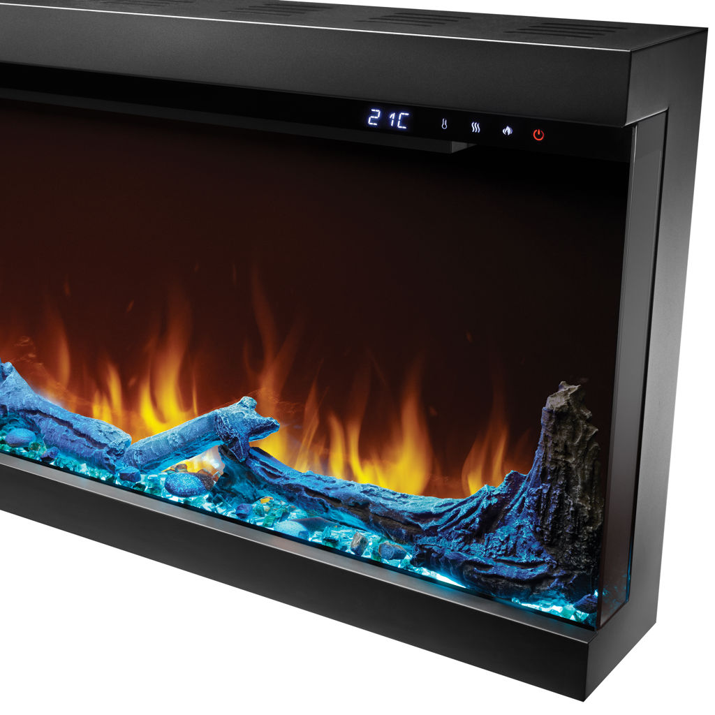 Personnalisez vos réglages de chaleur et de couleur pour chaque jour de la semaine en programmant un horaire. Treize couleurs de lit de braises et d'éclairage supérieur vous permettent de personnaliser l'ambiance, tandis que les braises de verre optionnelles et les bûches incluses garantissent que ce foyer s'harmonise avec votre style.