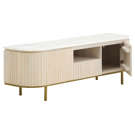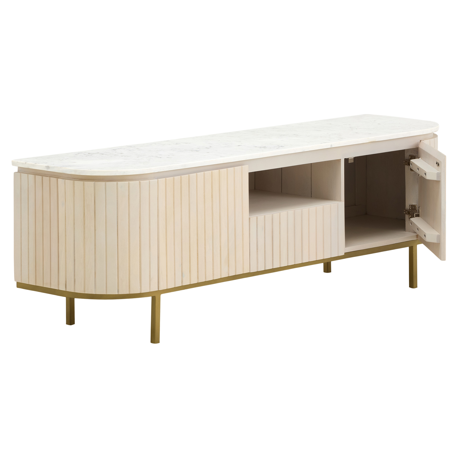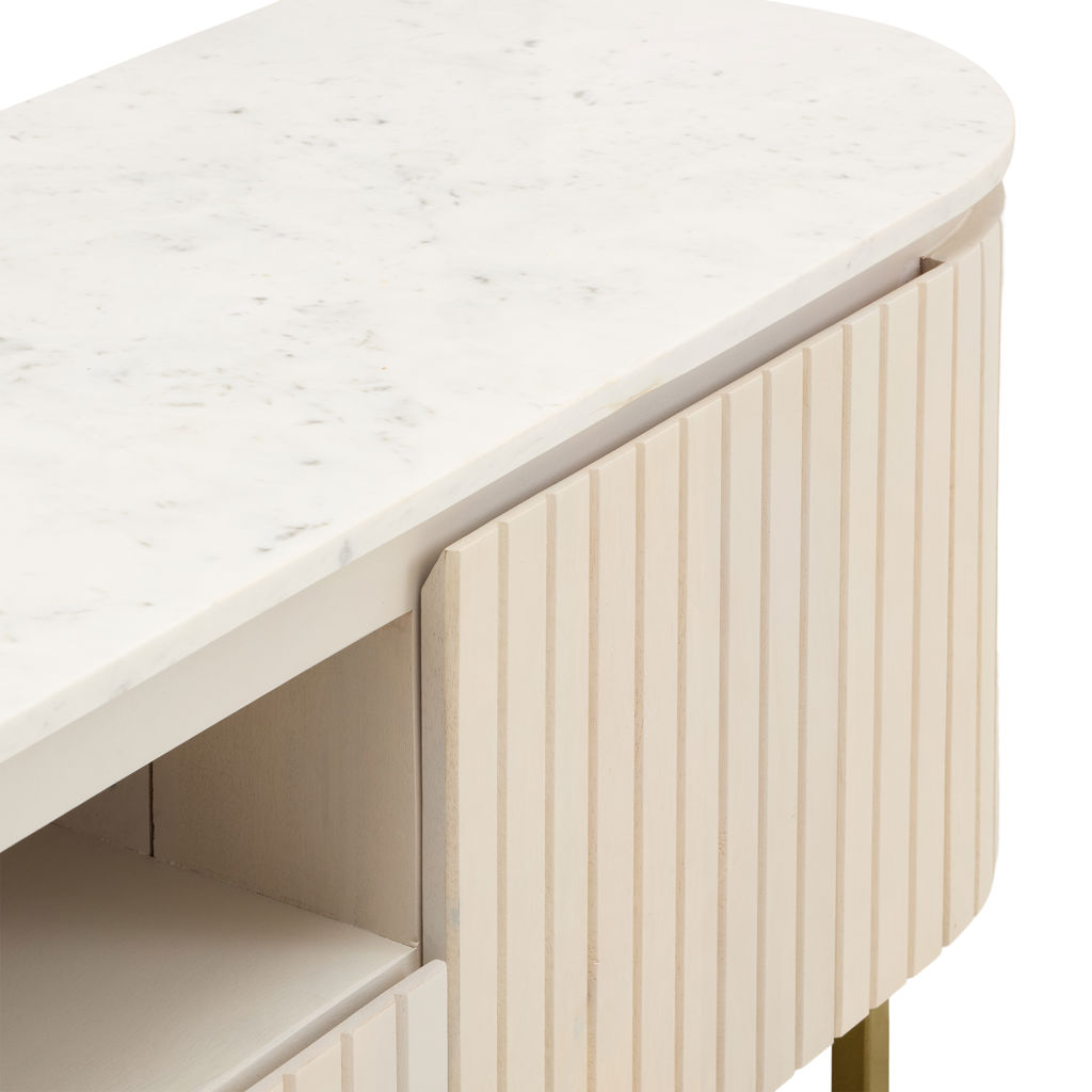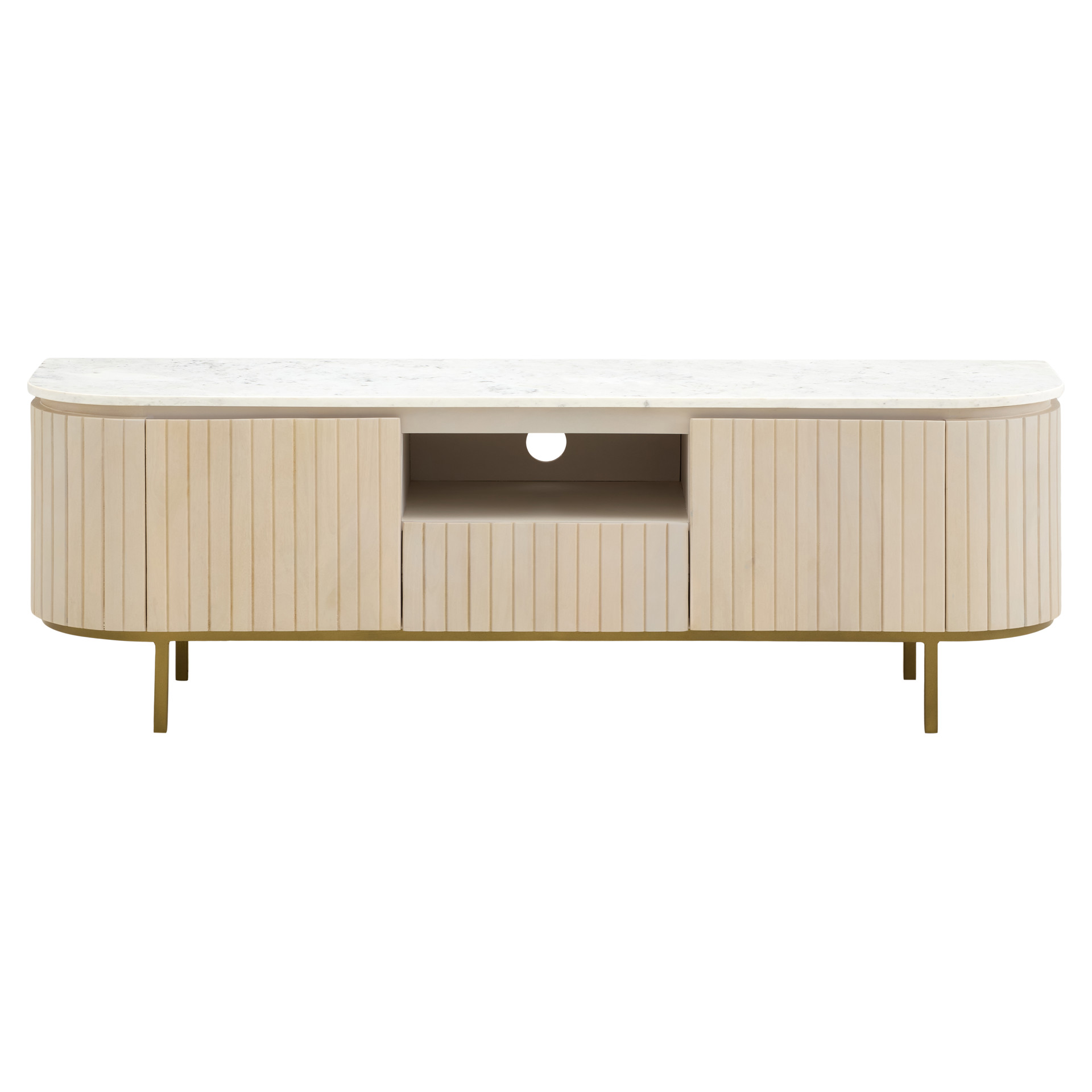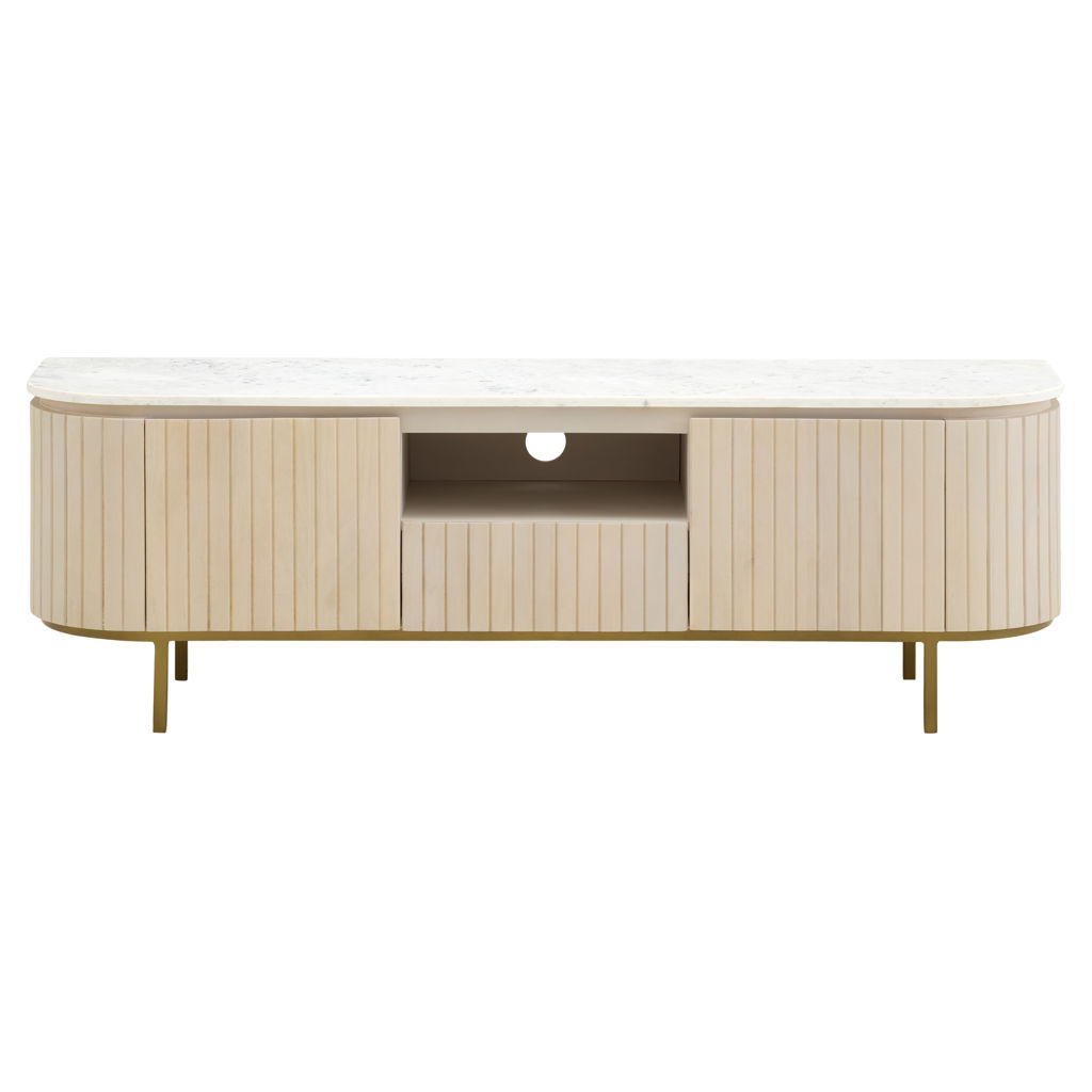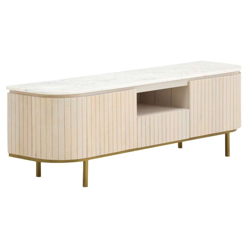 Ce meuble télé en bois avec dessus en marbre vous permettra d'y intégrer tous les éléments sonores et visuels auxquels vous tenez à cœur.