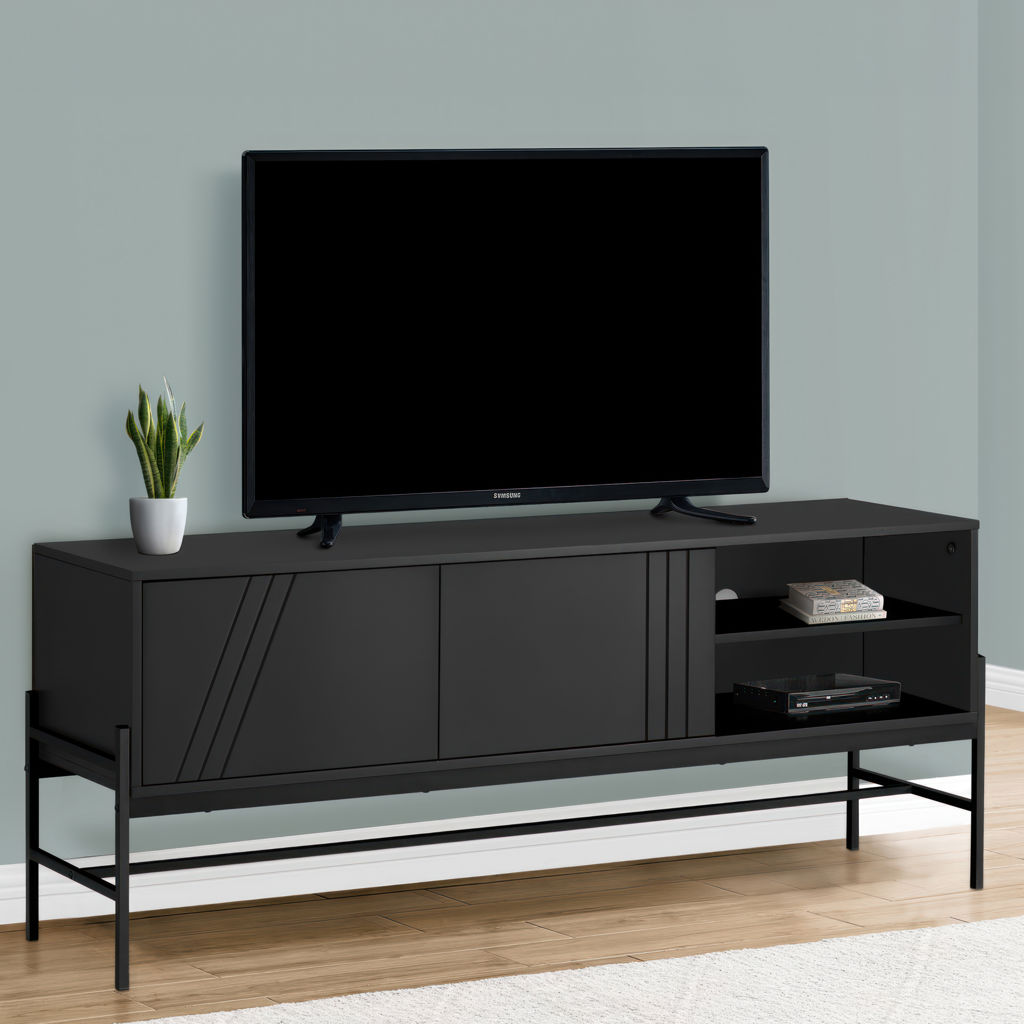 Ajoutez un rangement élégant et fonctionnel à votre salon ou à votre chambre à coucher avec ce meuble TV et cette console multimédia tendance de 60 pouces.