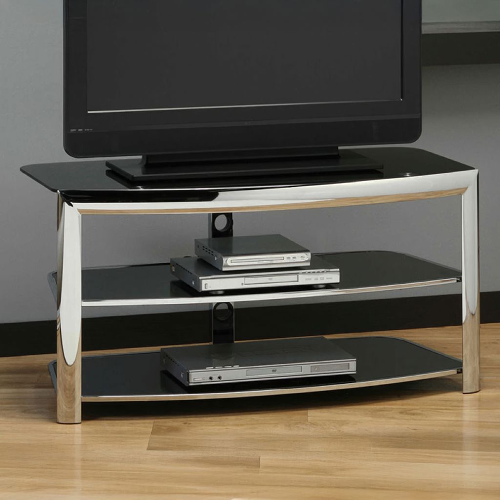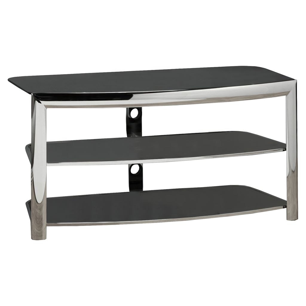 Fini de couleur noir et un cadre chrome, ce meuble robuste vous offre aussi des ouvertures à l'arrière pour organizer vos câbles.