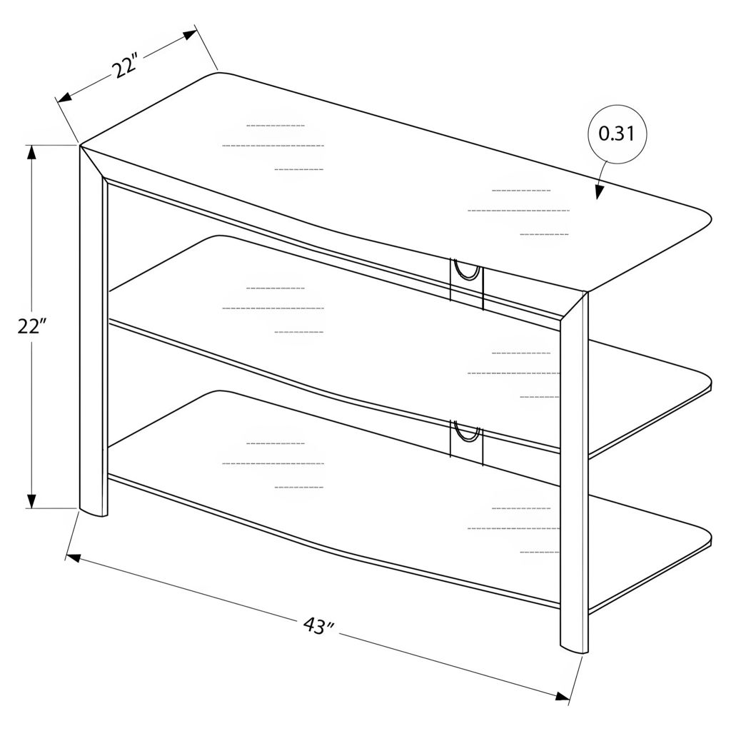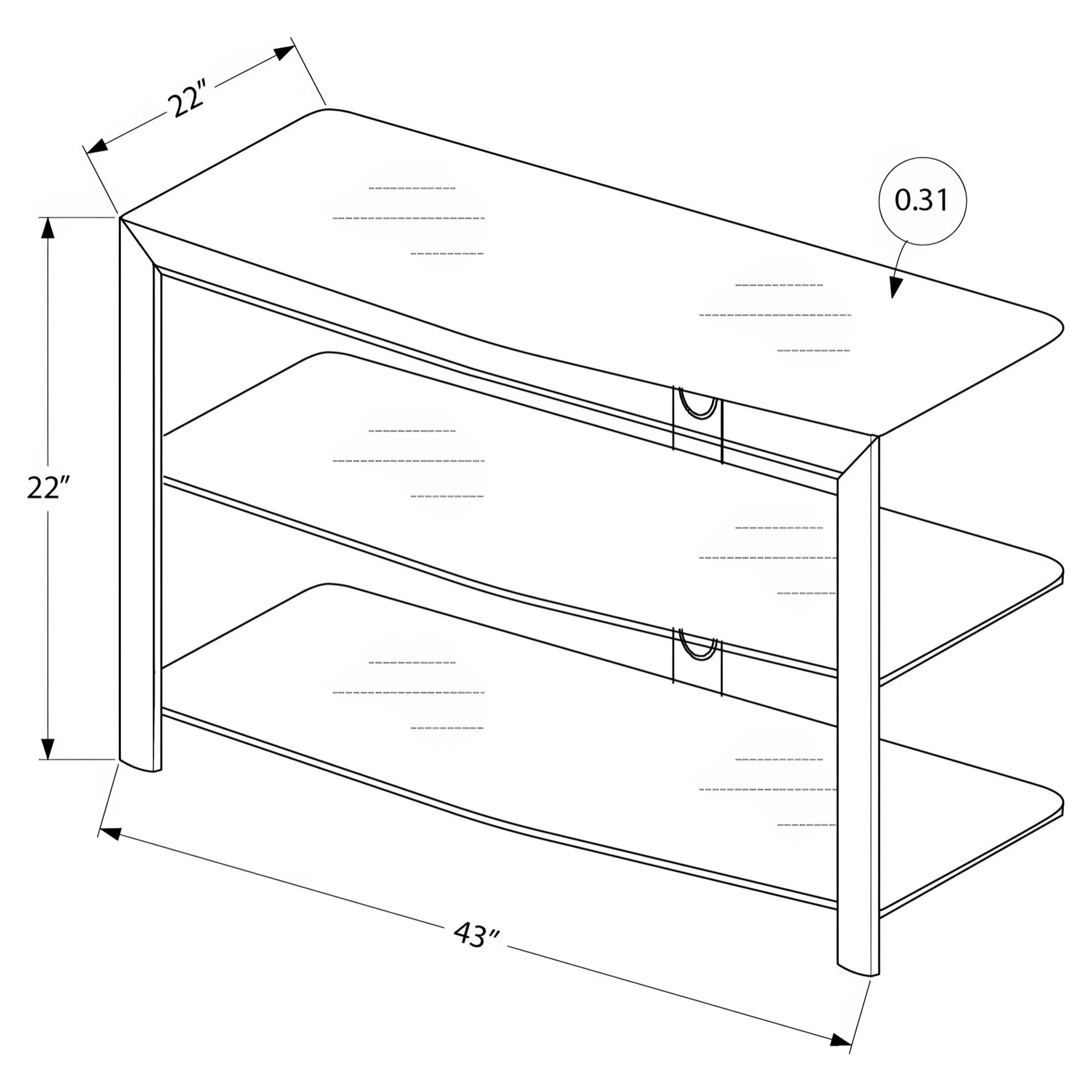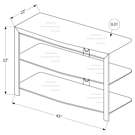 Élégant et moderne, ce meuble TV deviendra le point focal de votre salon. Avec ces deux tablettes en verre trempé et sa grande surface pouvant accommoder un téléviseur, ce meuble saura combler tous vos besoins en terme de divertissement.
