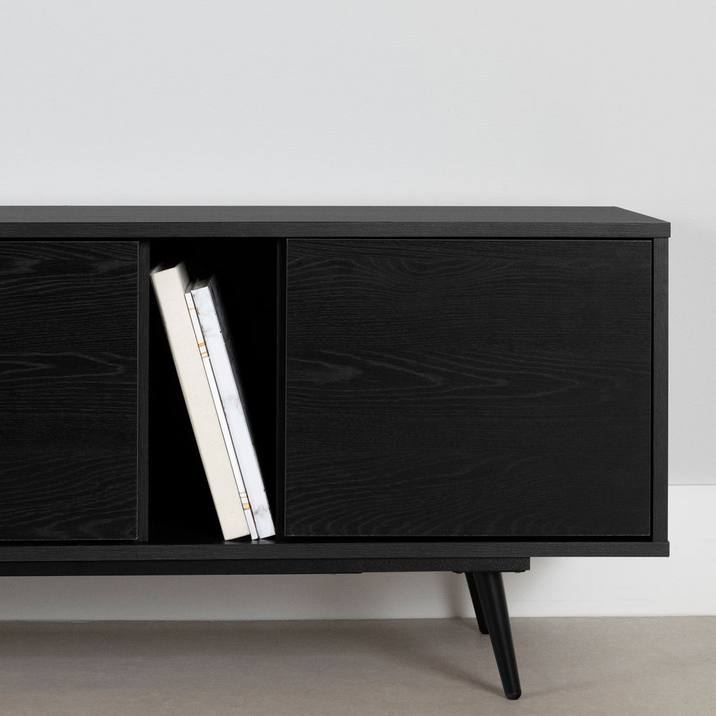 Ce meuble est une solution pensée pour rendre votre vie plus facile. Grâce à son trou passe-fil accessible de deux compartiments, fini le casse-tête des câbles! Les 2 tablettes ajustables, le généreux espace de rangement fermé et l´espace de rangement ouvert vertical vous permettent d´avoir tout à portée de main, que ce soient vos appareils, vos livres ou votre collection de vinyles. En plus, il est assez solide pour accueillir un téléviseur allant jusqu´à 75 pouces!