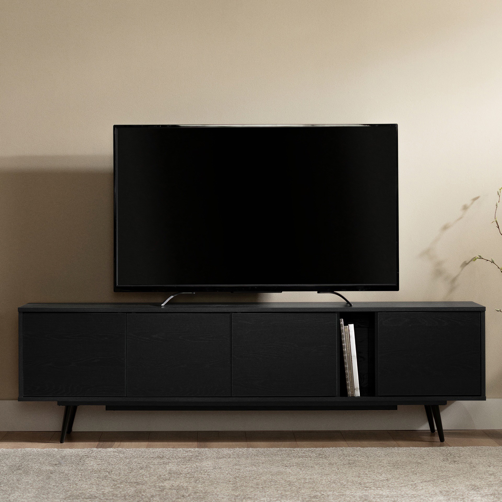 Avec son allure moderne et ses lignées épurées, ce meuble TV transforme n´importe quel espace de vie en un coin à la fois ordonné et tendance. Monté sur de fines pattes de métal et s´étendant sur 71 pouces, il apporte une touche de légèreté et l´élégance.