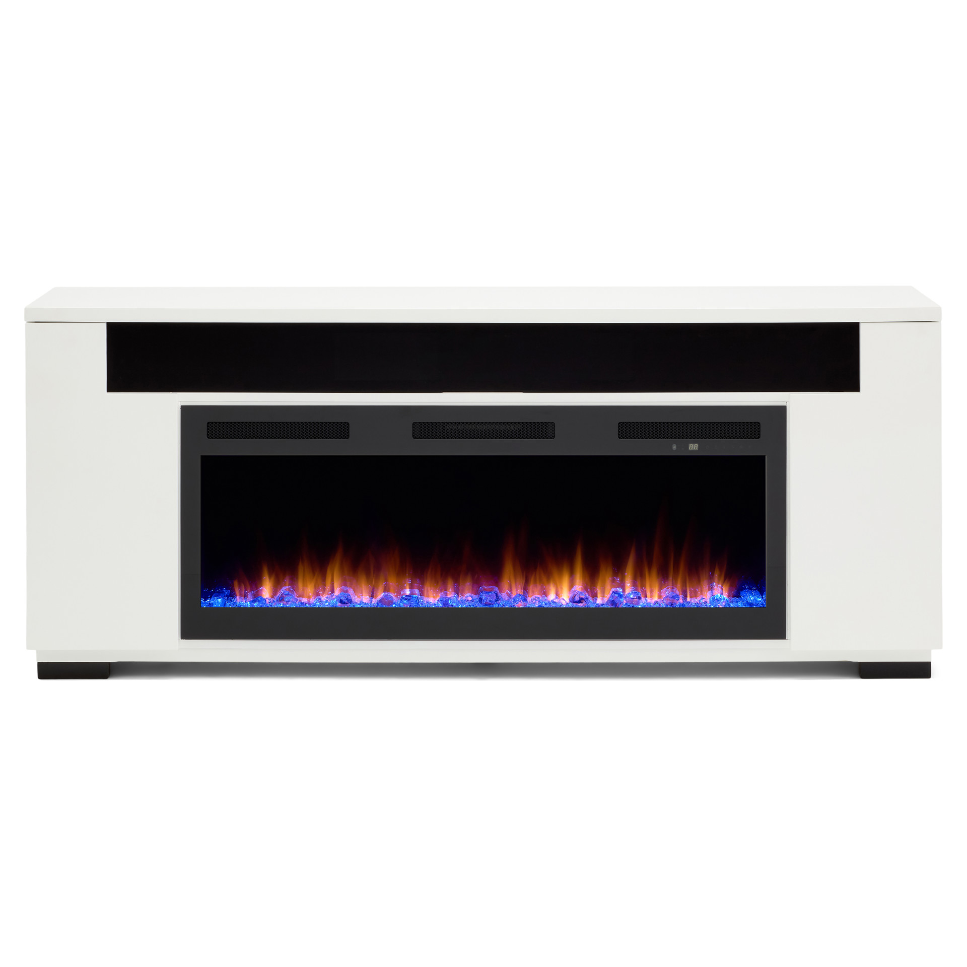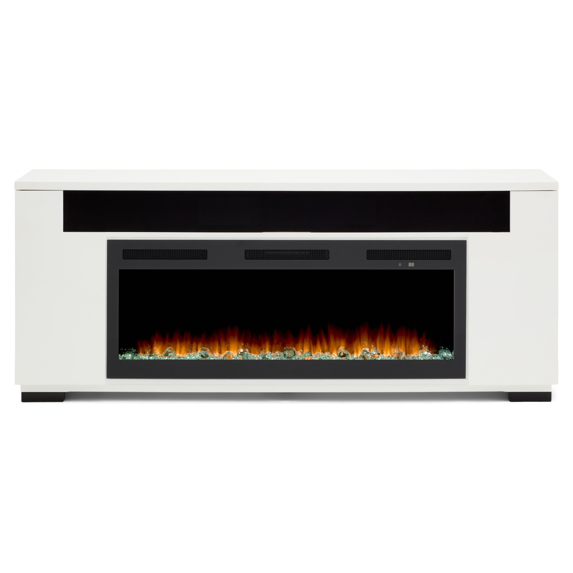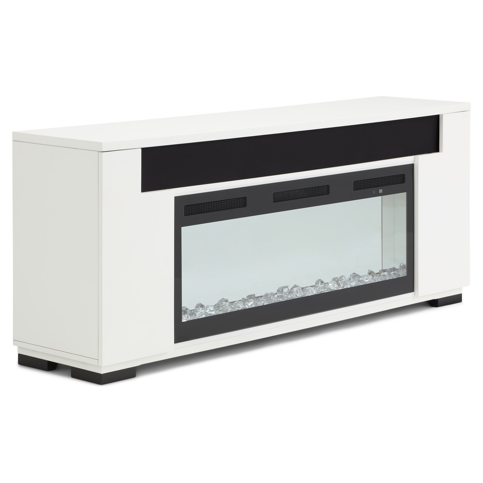 Les lignes épurées et contemporaines de la console multimédia Haley avec foyer électrique sont rehaussées par une touche de design industriel avec ses pieds en métal robustes. Le compartiment de haut-parleur intégré et une surface pouvant accueillir les plus grands téléviseurs font de ce meuble une merveille de technologie. Présentée dans une finition blanche éclatante, la console multimédia Haley est un complément moderne parfait à vos appareils électroniques audio-vidéo et consoles de jeux.