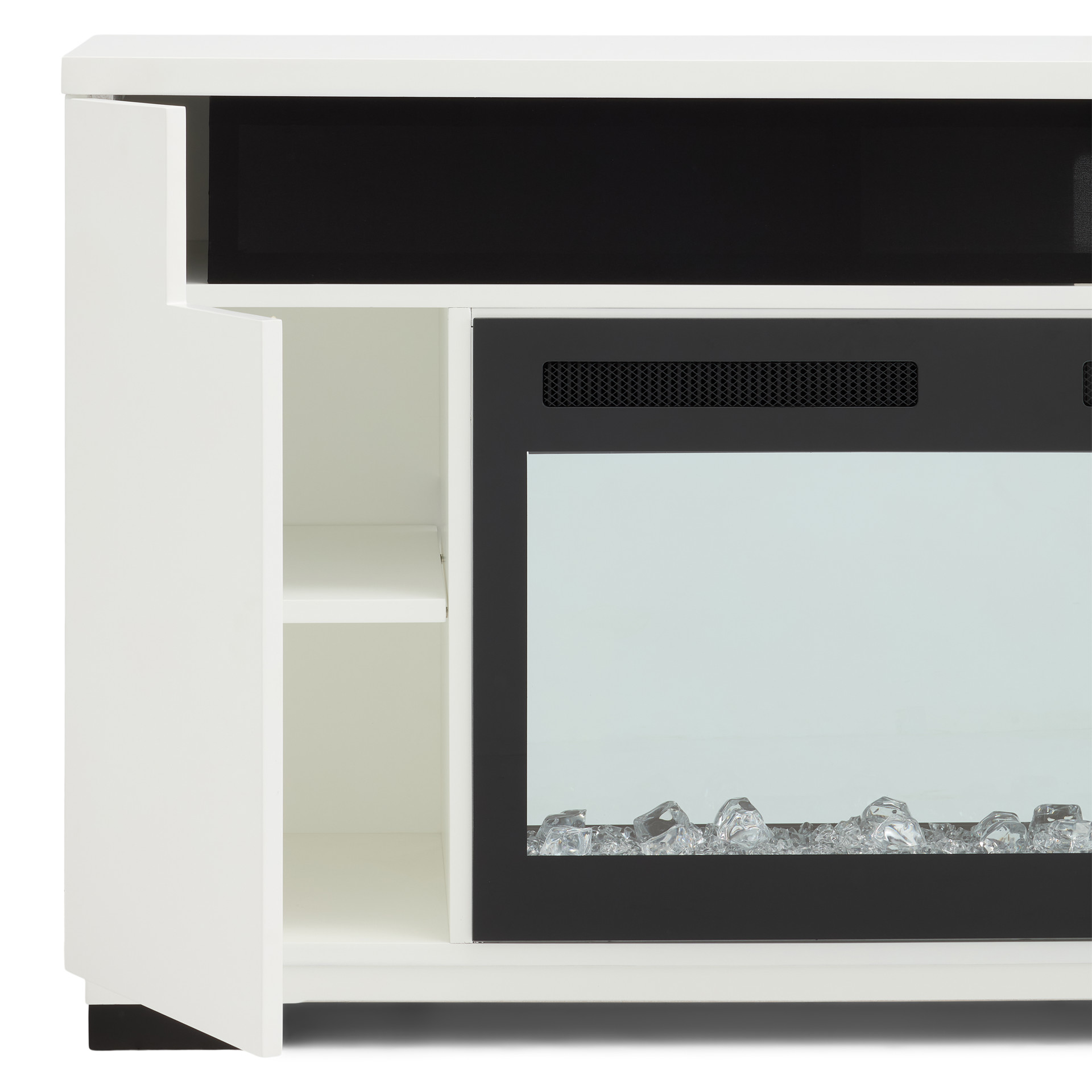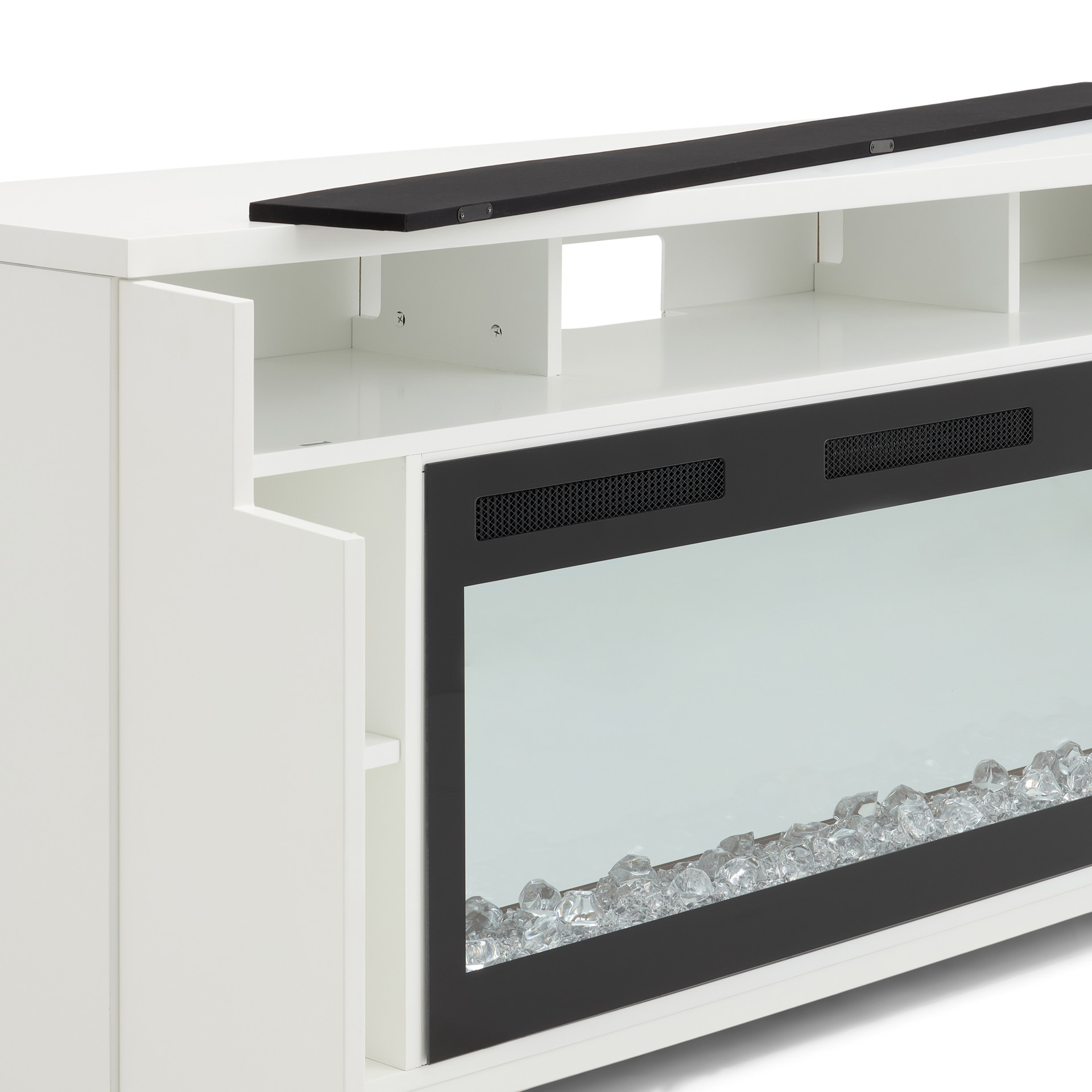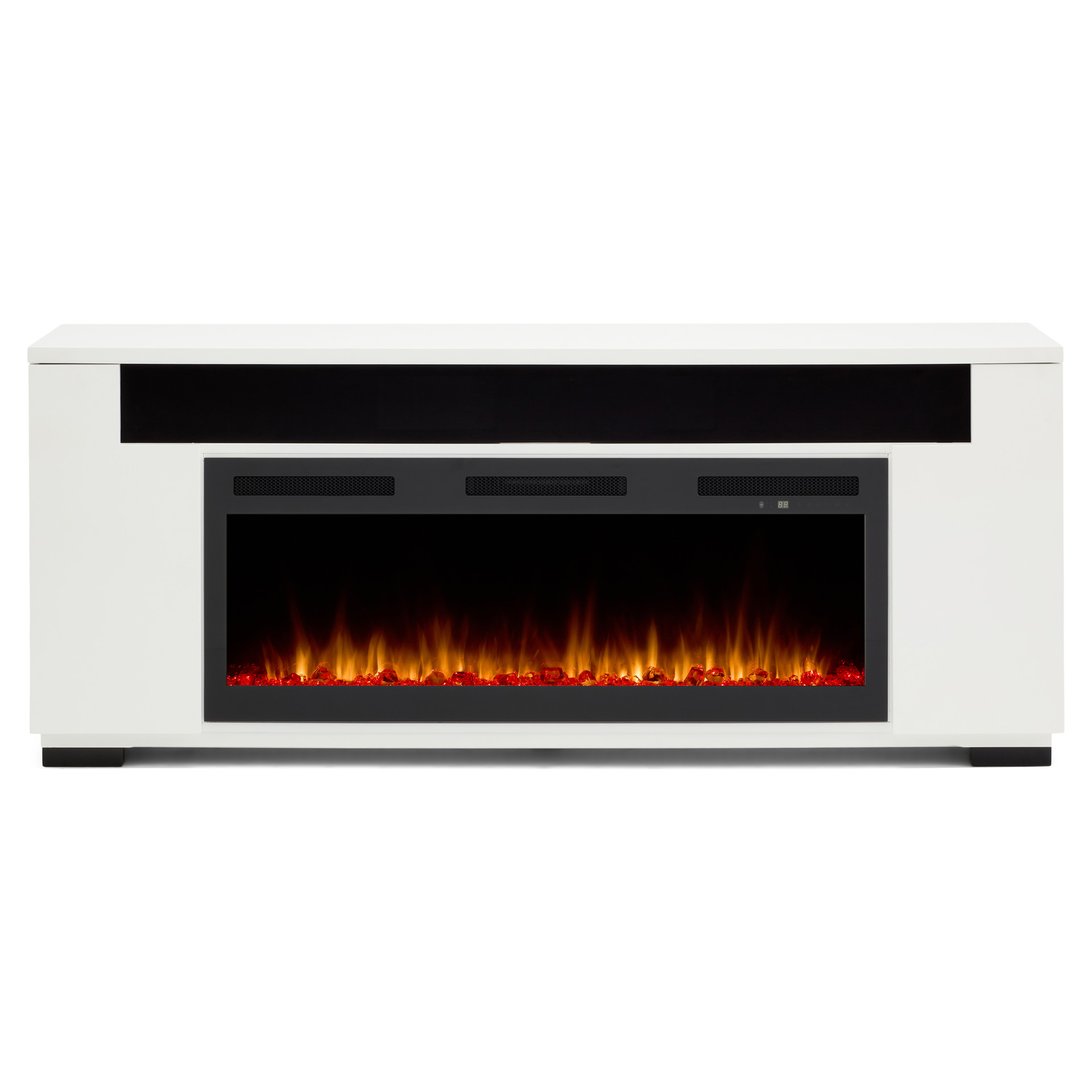 Les lignes épurées et contemporaines de la console multimédia Haley avec foyer électrique sont rehaussées par une touche de design industriel avec ses pieds en métal robustes. Le compartiment de haut-parleur intégré et une surface pouvant accueillir les plus grands téléviseurs font de ce meuble une merveille de technologie. Présentée dans une finition blanche éclatante, la console multimédia Haley est un complément moderne parfait à vos appareils électroniques audio-vidéo et consoles de jeux.