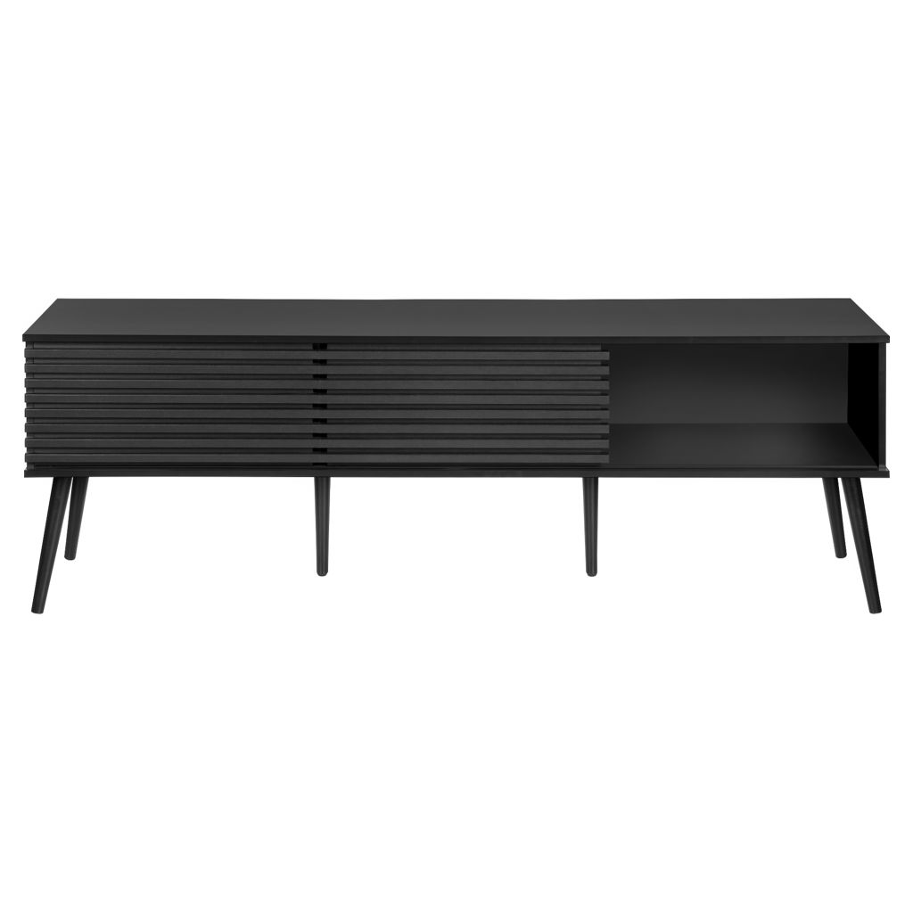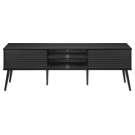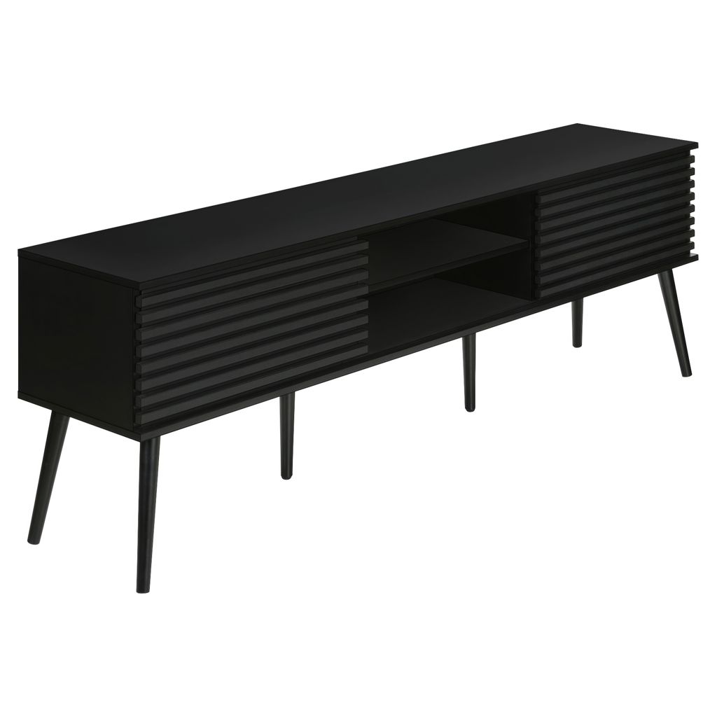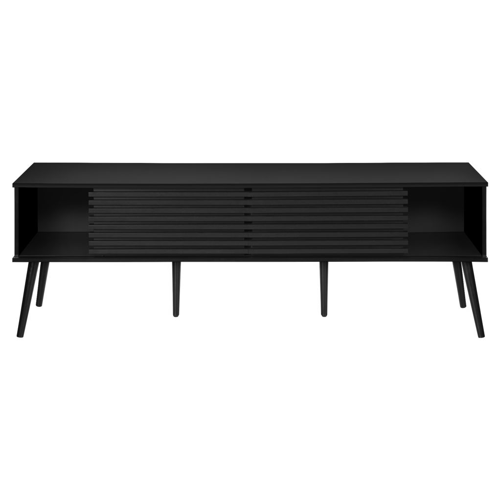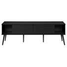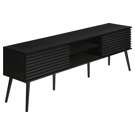 Construit avec des pieds en bois massif de conception durable, ce meuble TV offre à la fois des étagères de rangement ouvertes et des options de rangement fermées pour garder votre espace organisé et sans encombrement.