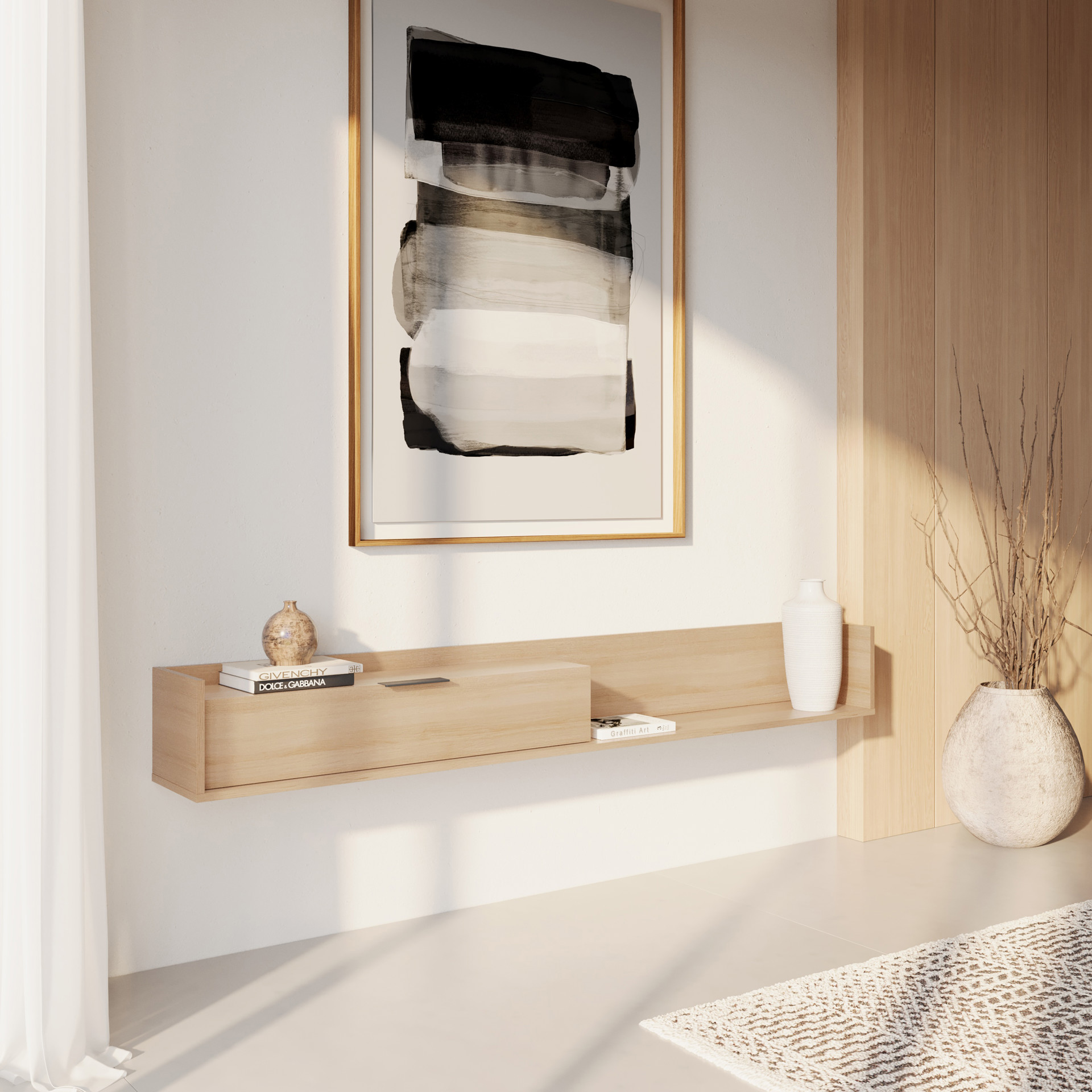 Avec ses lignes épurées et son design suspendu, cette console murale apporte structure et légèreté à votre espace.