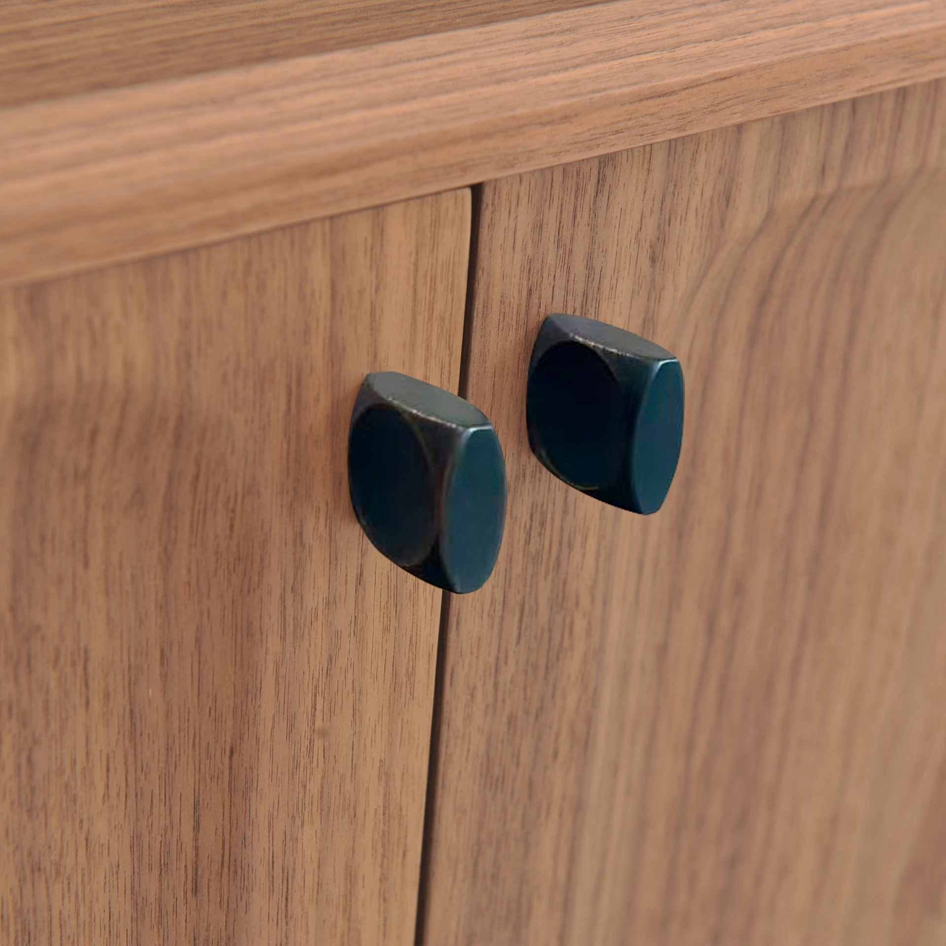 Le mélange harmonieux du bois et des poignées de métal apporte texture et contraste, soulignant le souci du détail et la qualité de fabrication.
