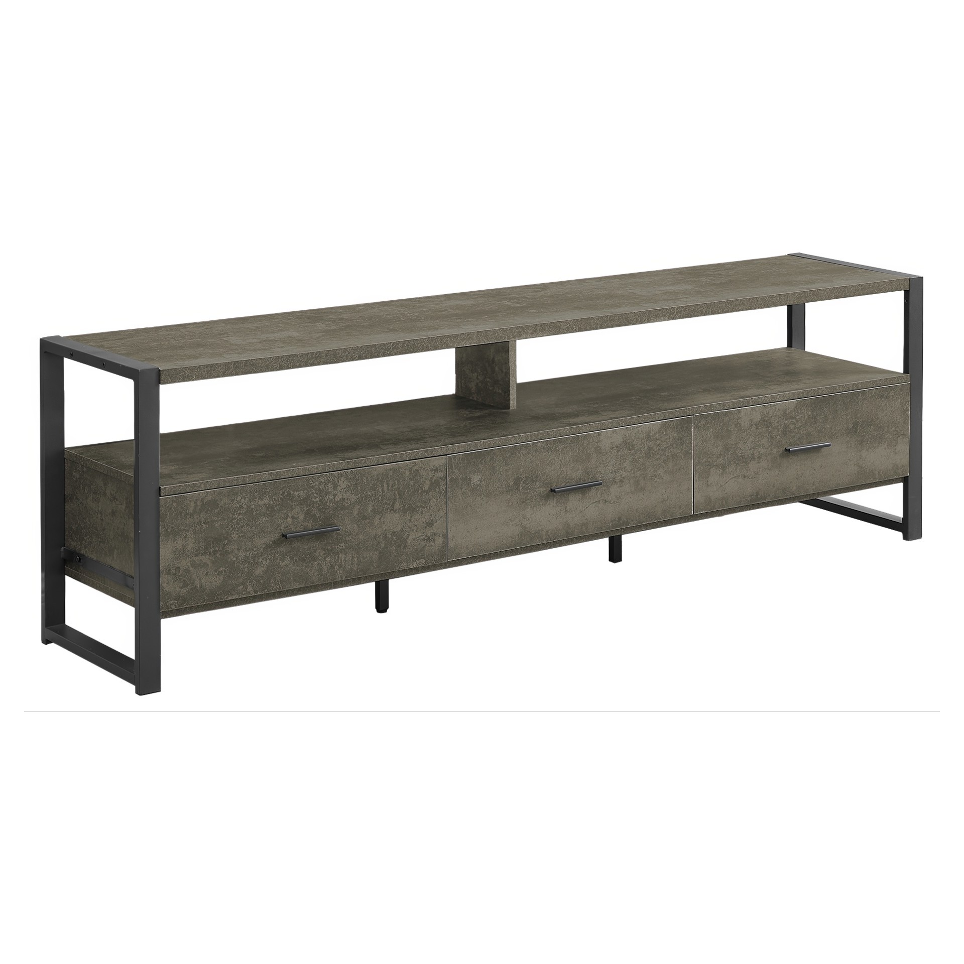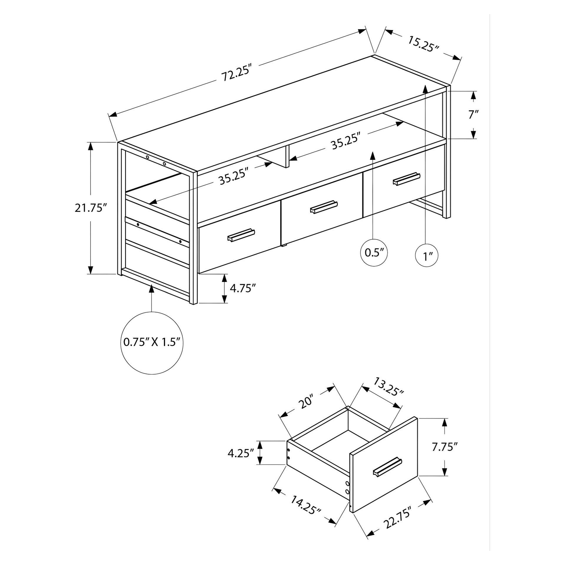Les deux étagères ouvertes sont idéales pour exposer vos appareils multimédias, tandis que les trois tiroirs de rangement sur glissières métalliques offrent un vaste espace pour tous vos essentiels de divertissement.