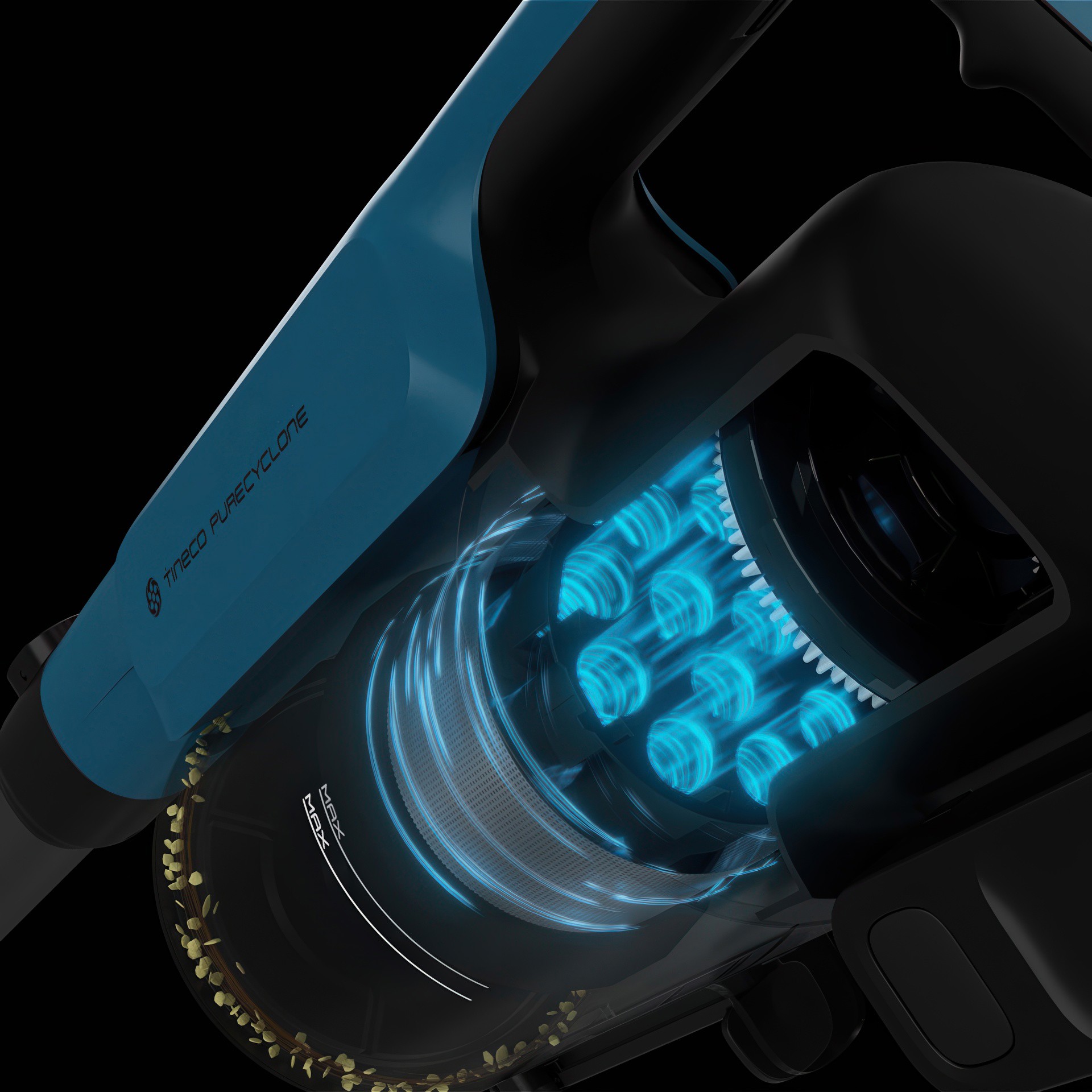 • Le système de filtration multicyclonique avancé piège les particules de poussière fines pour un nettoyage en profondeur et complet.