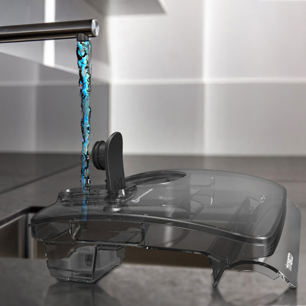 Lorsque vous avez terminé, il vous suffit de placer l'appareil dans la station d'accueil autonettoyante, qui rince la brosse et le tube, afin que votre GO H2O HammerHead reste frais et prêt pour le prochain nettoyage.
