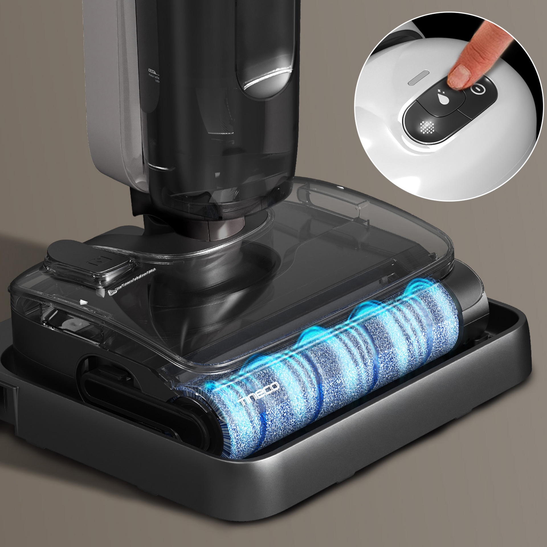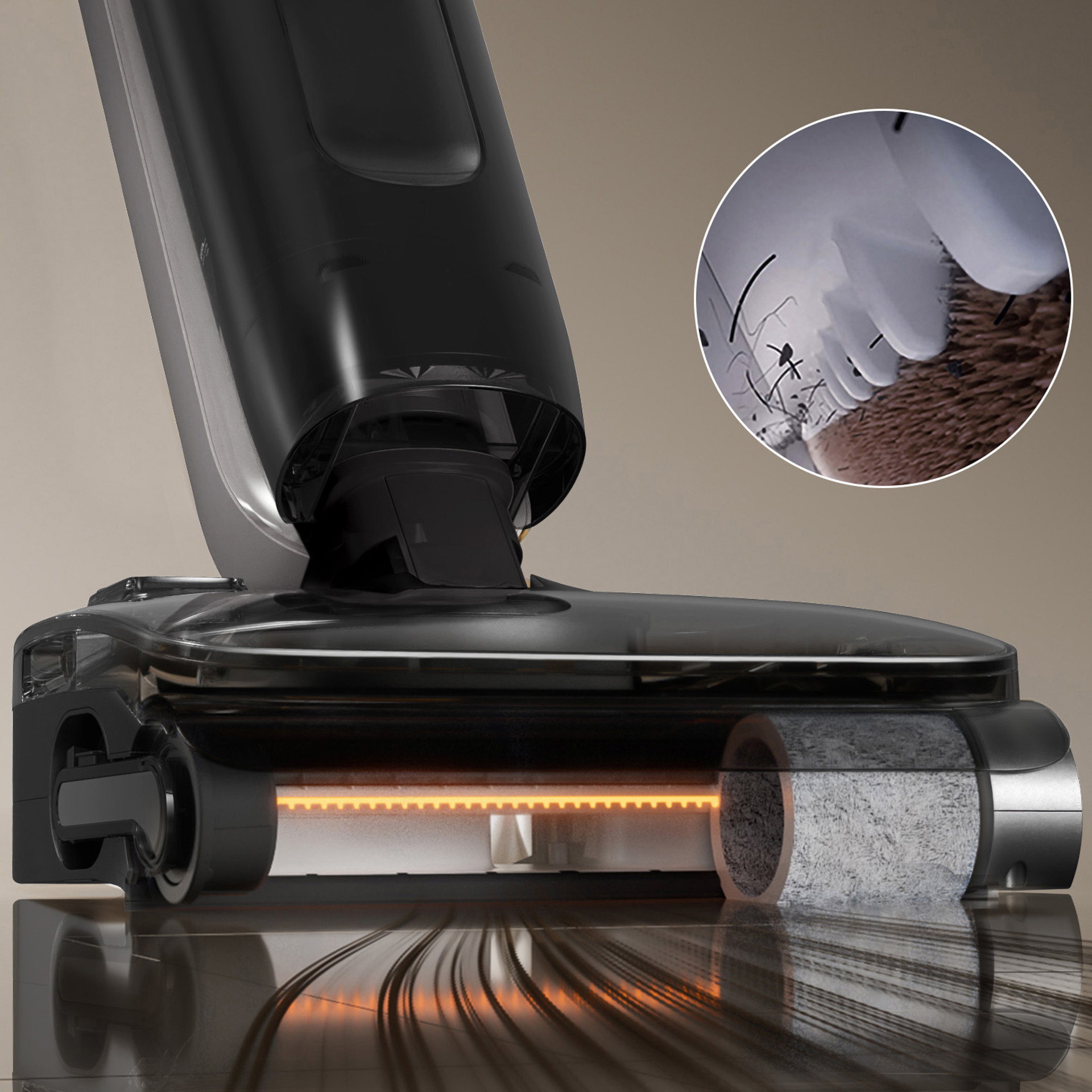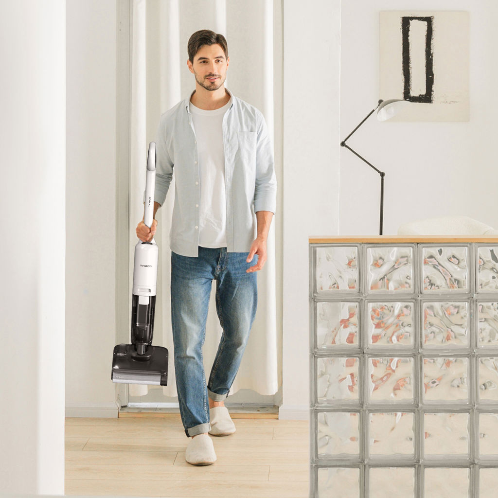 Grâce à son fonctionnement sans fil et à son autonomie de 25 minutes, vous pouvez vous déplacer librement d'une pièce à l'autre et nettoyer sans effort tous les types de sols durs, y compris le carrelage, le stratifié, le vinyle et le bois dur.