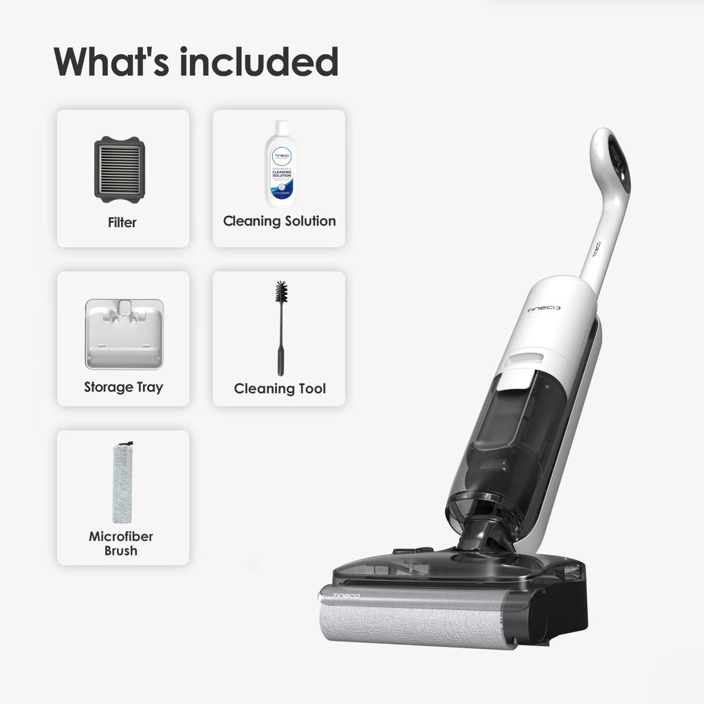 Qu'il s'agisse de boissons renversées, de traces de pas boueuses, de poils d'animaux ou de poussière quotidienne, cette serpillière 3-en-1, cet aspirateur et ce système autonettoyant garantissent que vos sols restent impeccables.