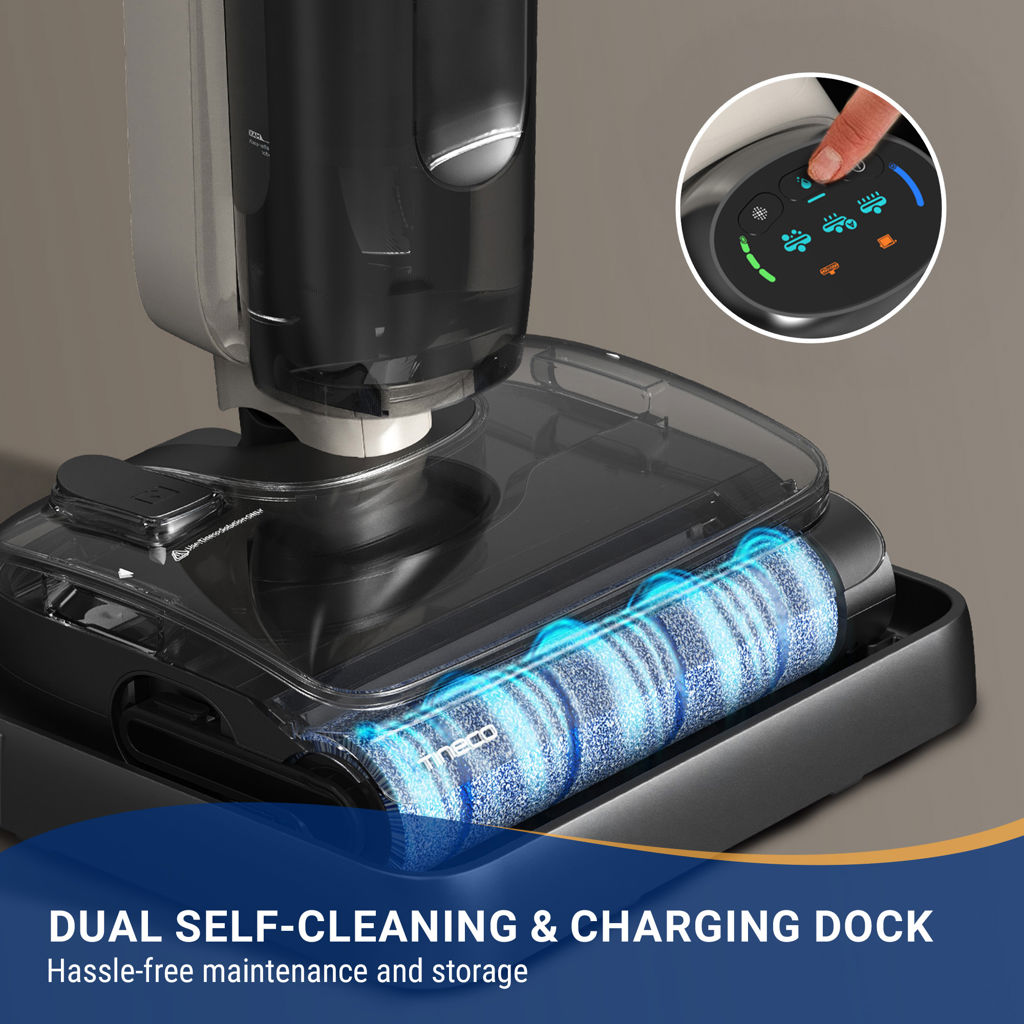 Il s'agit d'une serpillière, d'un aspirateur et d'un système autonettoyant 3-en-1 conçu pour les foyers occupés, en particulier ceux qui ont des animaux domestiques.