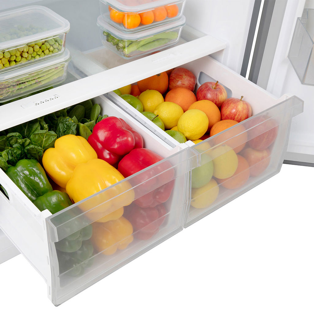 Les évents réglables sur chaque bac à légumes aident à maintenir le niveau d'humidité, aidant à garder les fruits et légumes frais plus longtemps.