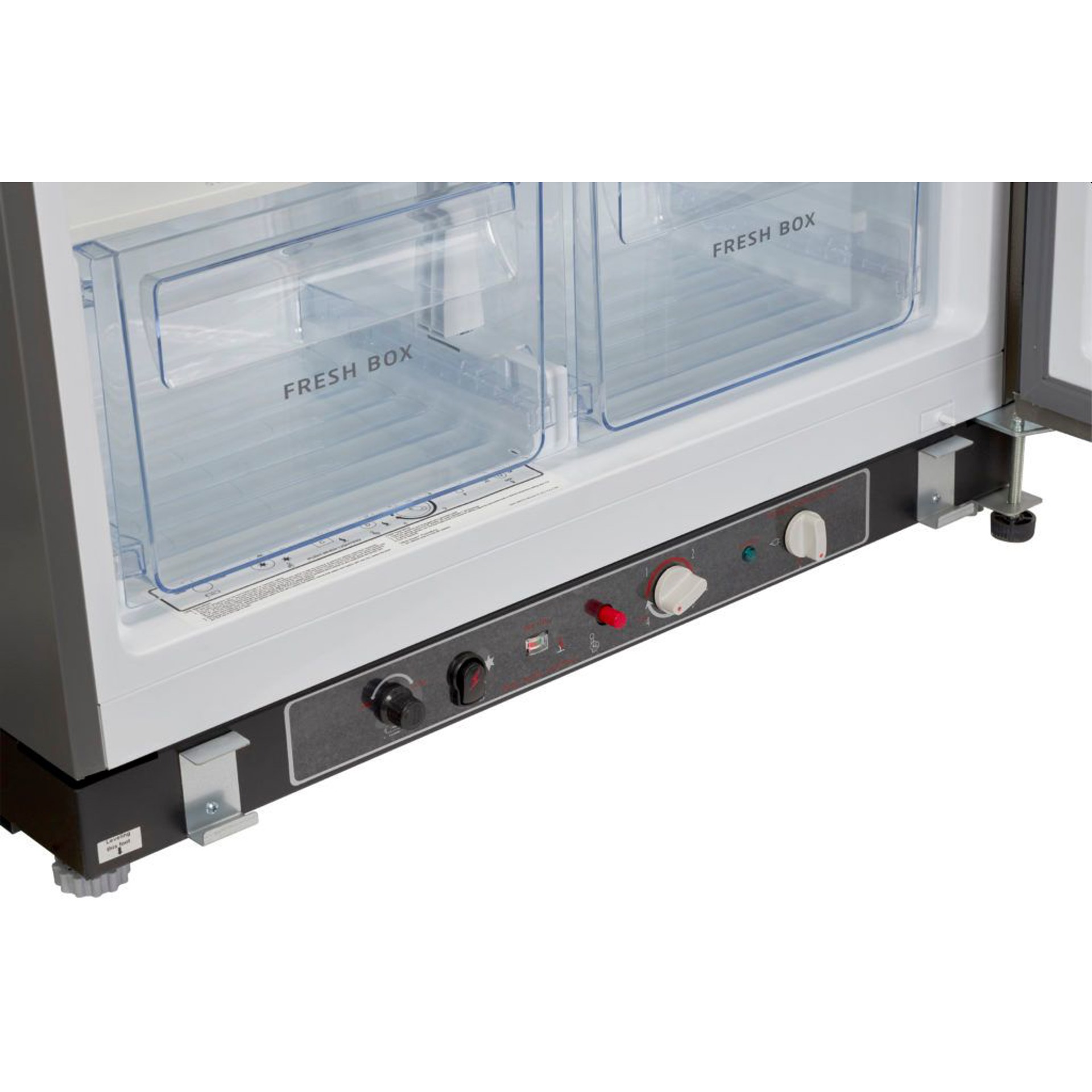 L'Unique 19 est doté d'étagères en verre amovibles et de bacs à légumes rendant l'intérieur tout aussi attrayant que l'extérieur. Un immense congélateur offre de la place pour vos glaces, votre viande et même des sacs de glace pour vos boissons ! restez aussi longtemps que vous en avez besoin dans votre chalet ou votre chalet avec le nouveau réfrigérateur au propane de 19 pi d'Unique.