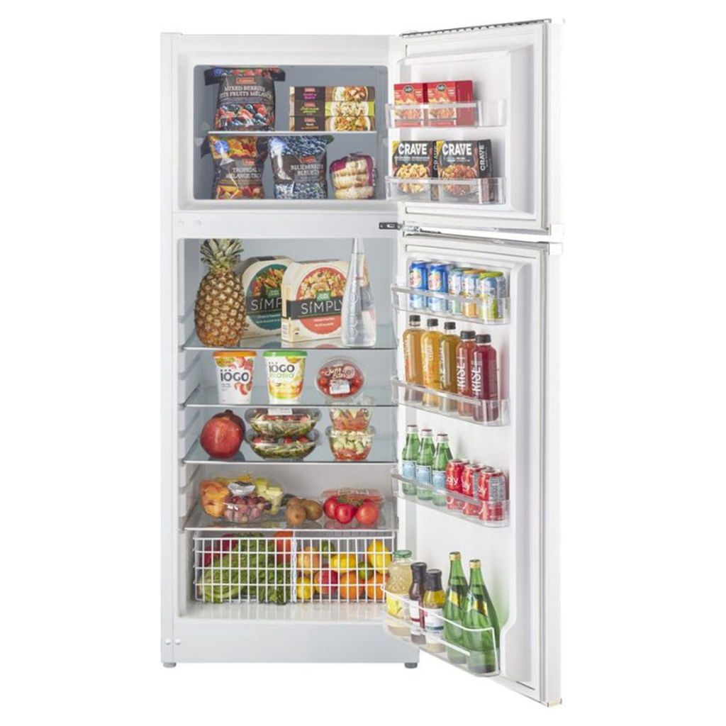 Son intérieur spacieux comprend des tablettes en verre robuste, 2 bacs à légumes au bas et suffisamment d’espace pour répondre aux besoins de votre famille, ce qui en fait le réfrigérateur idéal pour votre chalet.