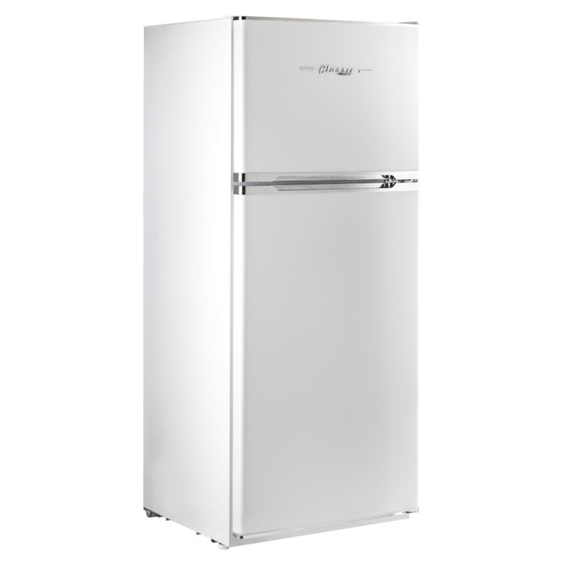 Avec son élégant design rétro moderne de mi-siècle et sa finition aux accents chromés, le réfrigérateur CC classique Retro de 385L de Unique avec congélateur vous transporte dans les années 1950.