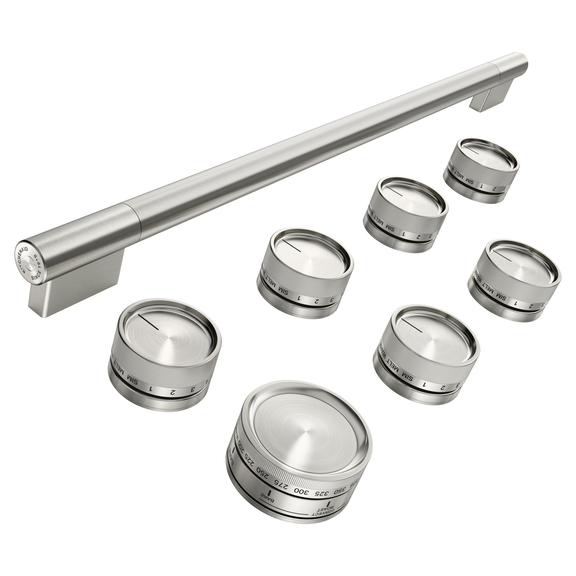Personnalisez votre quincaillerie avec un ensemble de poignées et boutons couleur inox. Conçue pour s'harmoniser avec les robinets de cuisine et les poignées d'armoires, la palette de métaux variés s'accorde avec toutes les finitions extérieures KitchenAid®, vous permettant ainsi de créer des combinaisons en toute confiance.