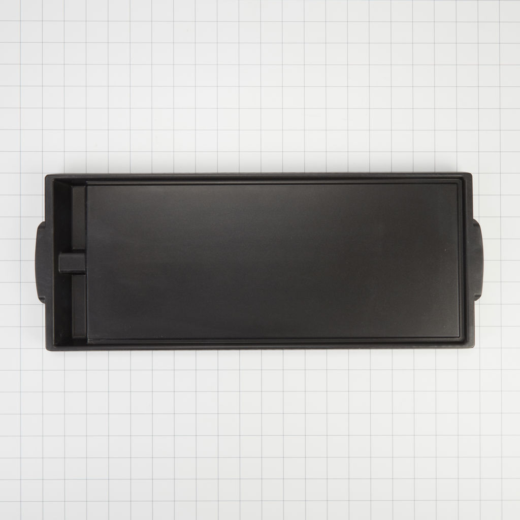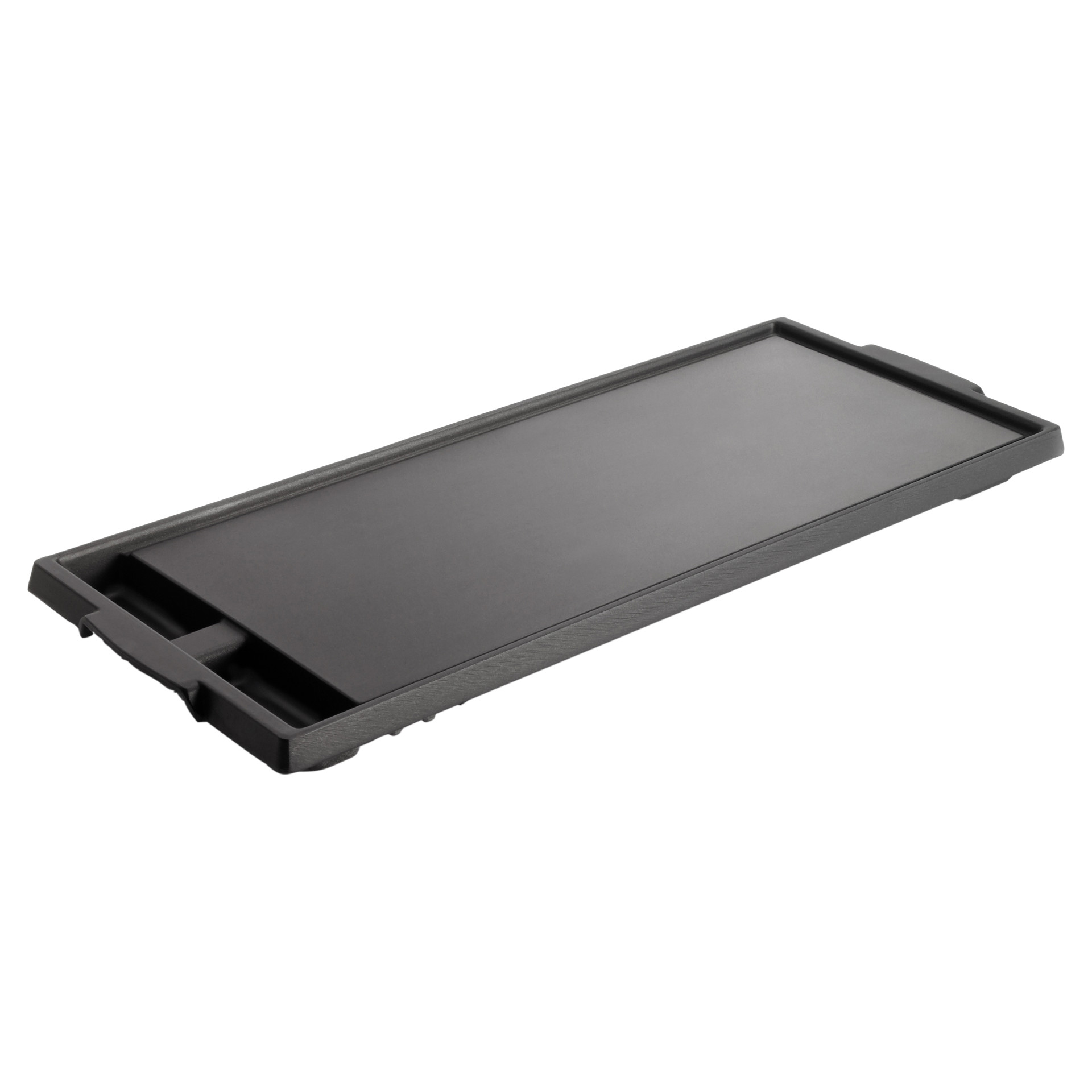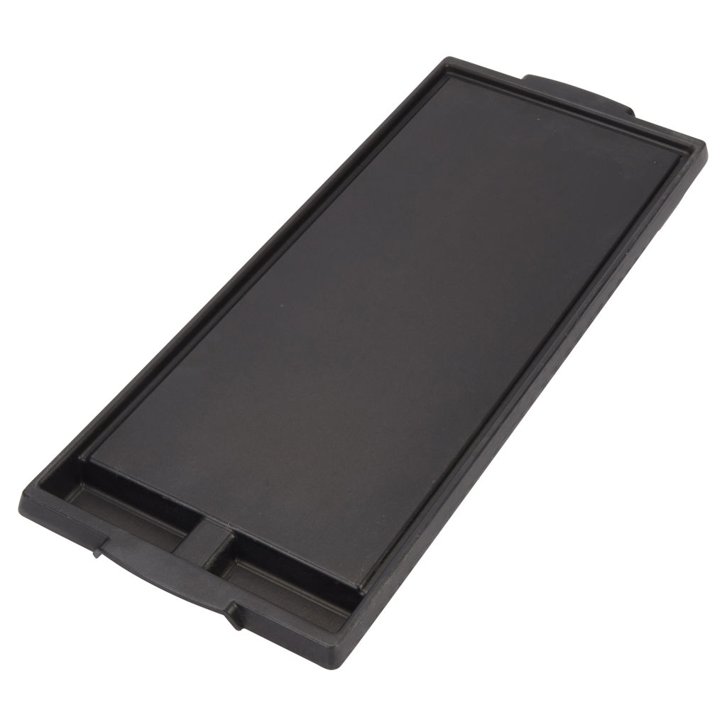 Elle est dotée de caniveaux d'évacuation encastrés et de deux bacs à graisse. Cet accessoire est compatible avec plusieurs marques ; vérifiez la compatibilité avec votre modèle.