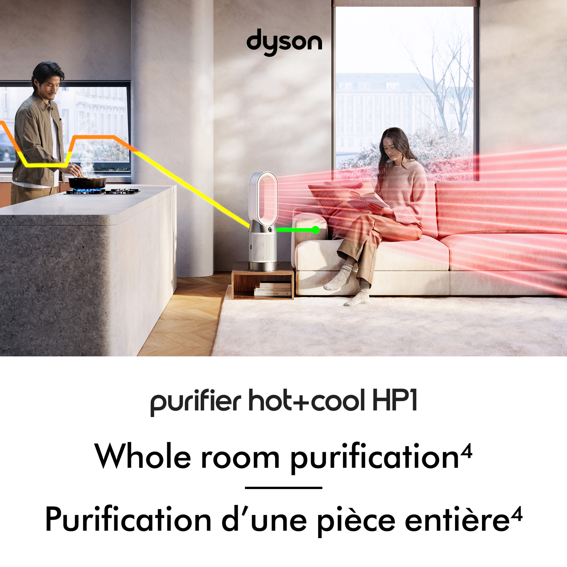Le purificateur Dyson Hot+Cool HP1 est capable de chauffer une pièce entière et d’assurer un refroidissement puissant avec de l’air purifié.