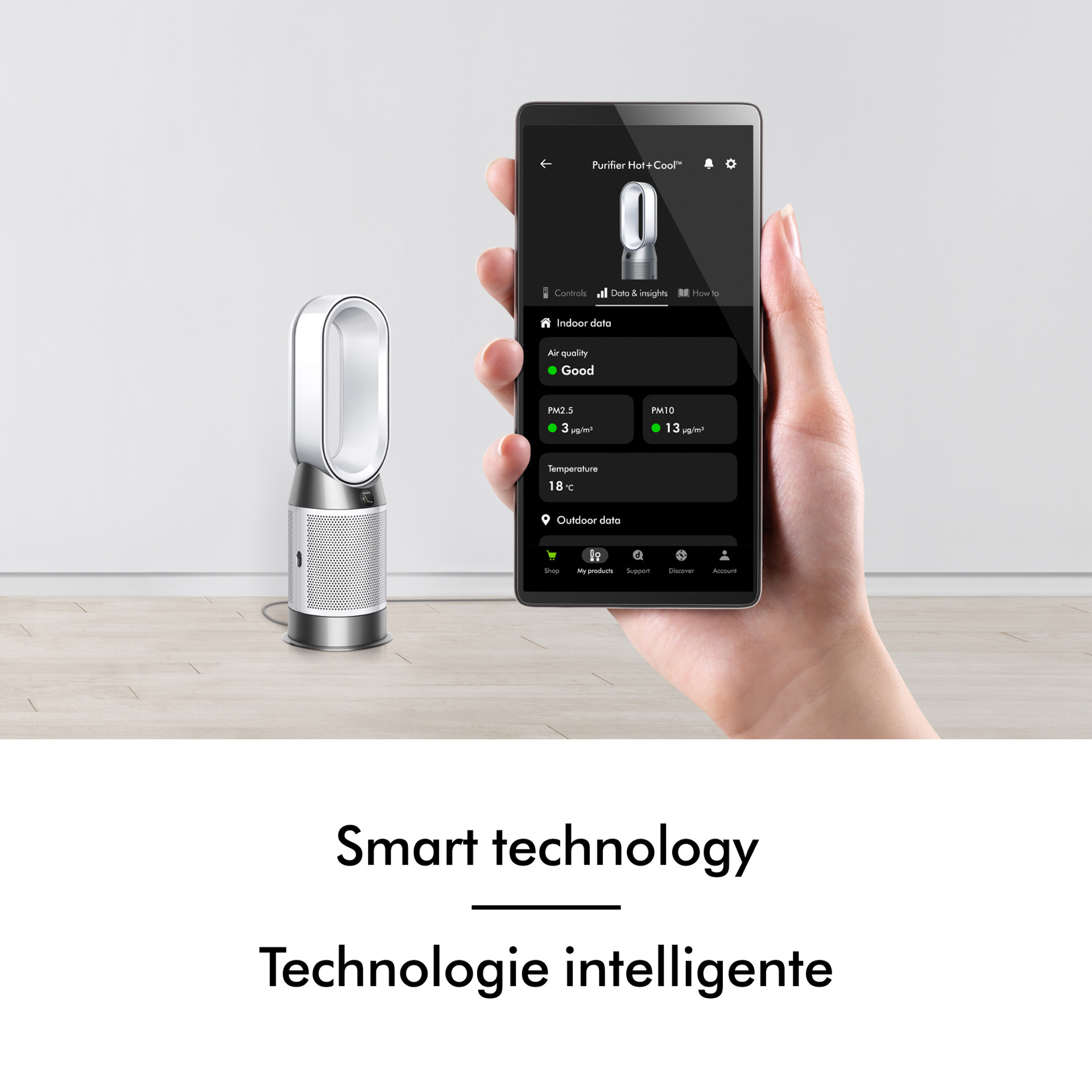 Permet de contrôler et de surveiller la qualité de l’air où que vous soyez à l’aide de l’application MyDyson, ou en mode mains libres en utilisant les services de commande vocale compatibles.