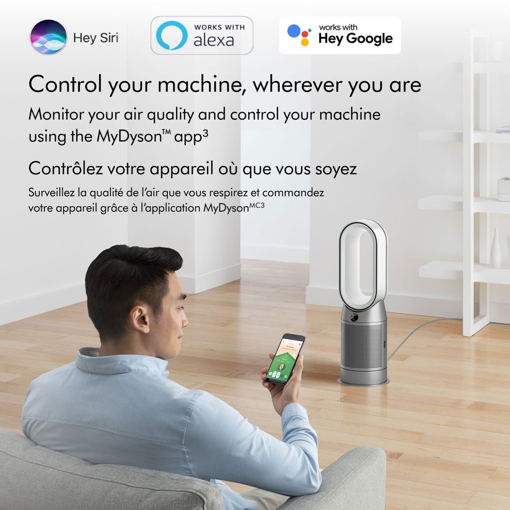 Le ventilateur-purificateur-chaufferette Dyson Purifier Hot+Cool allie une détection intelligente avec un système de filtration évolué qui capture les gaz* et 99,97 % des particules aussi petites que 0,3 micron. De plus, ils sont dotés de la technologie Air MultiplierMC pour purifier toute la pièce.**