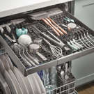 Libérez de l'espace pour plus de vaisselle dans les paniers ci-dessous avec un chargement facile pour l'argenterie, des ustensiles difficiles à installer comme des pinces ou même des tasses à mesurer et des cuillères.