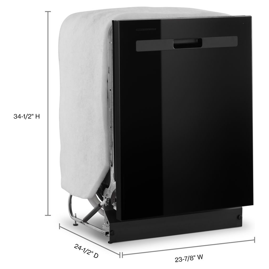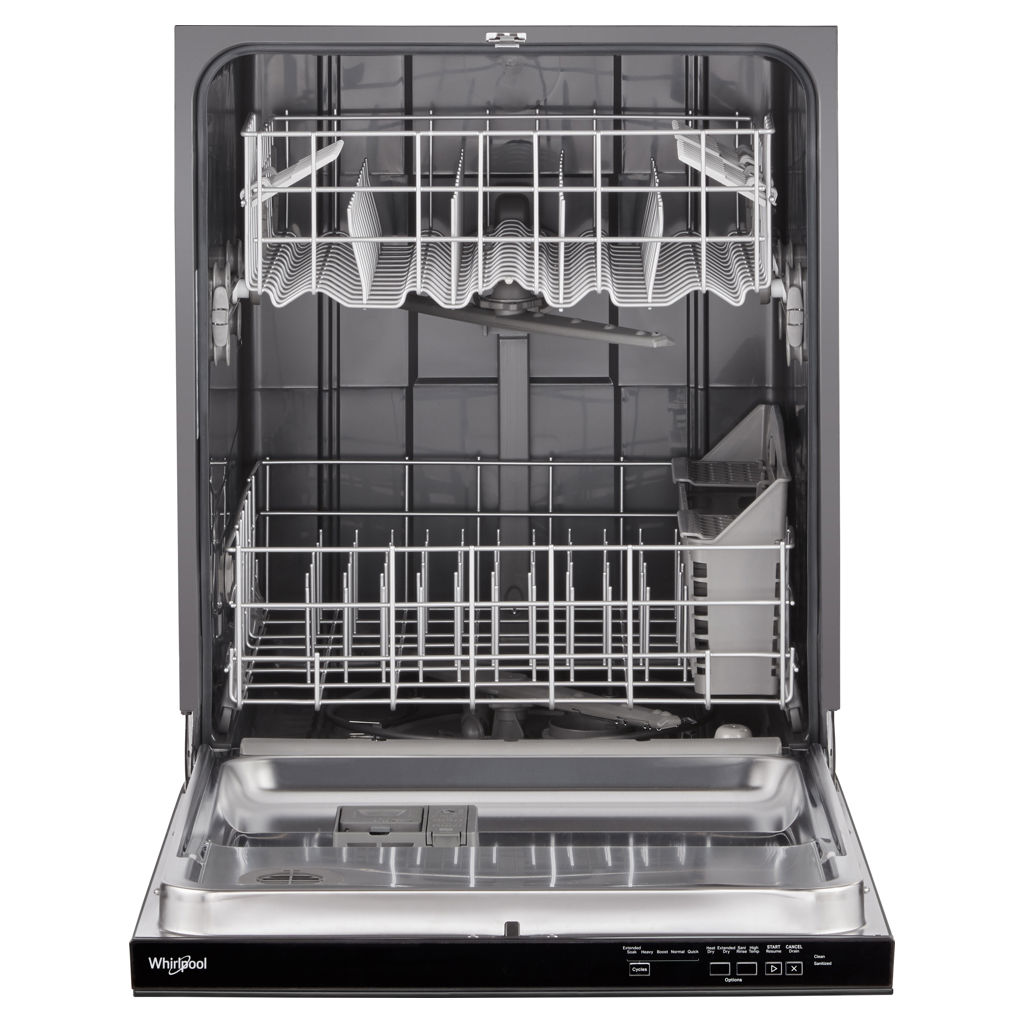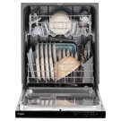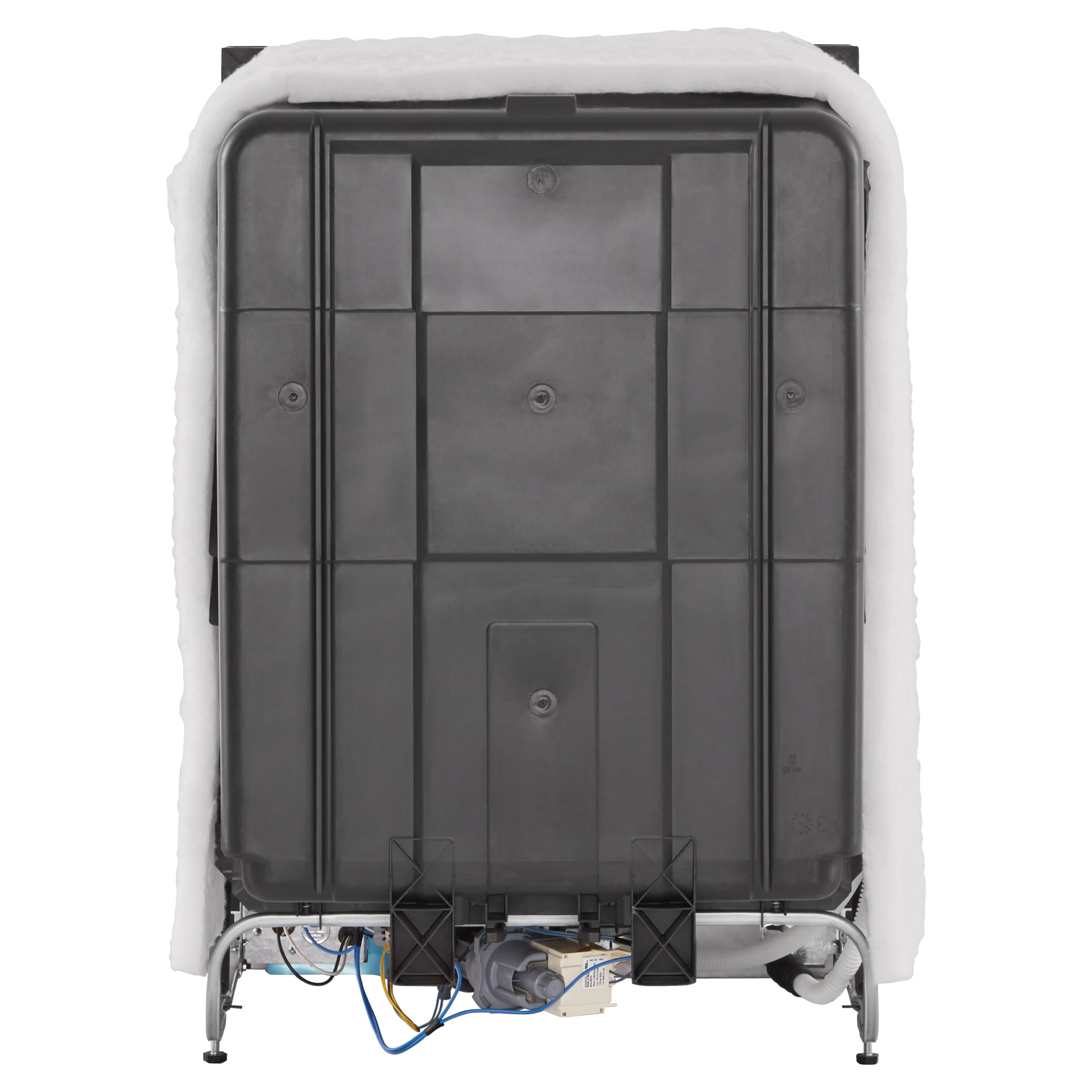Une cuve hybride avec intérieur gris foncé aide à masquer les taches de nourriture avec une porte intérieure en acier inoxydable et une cuve en plastique gris foncé.