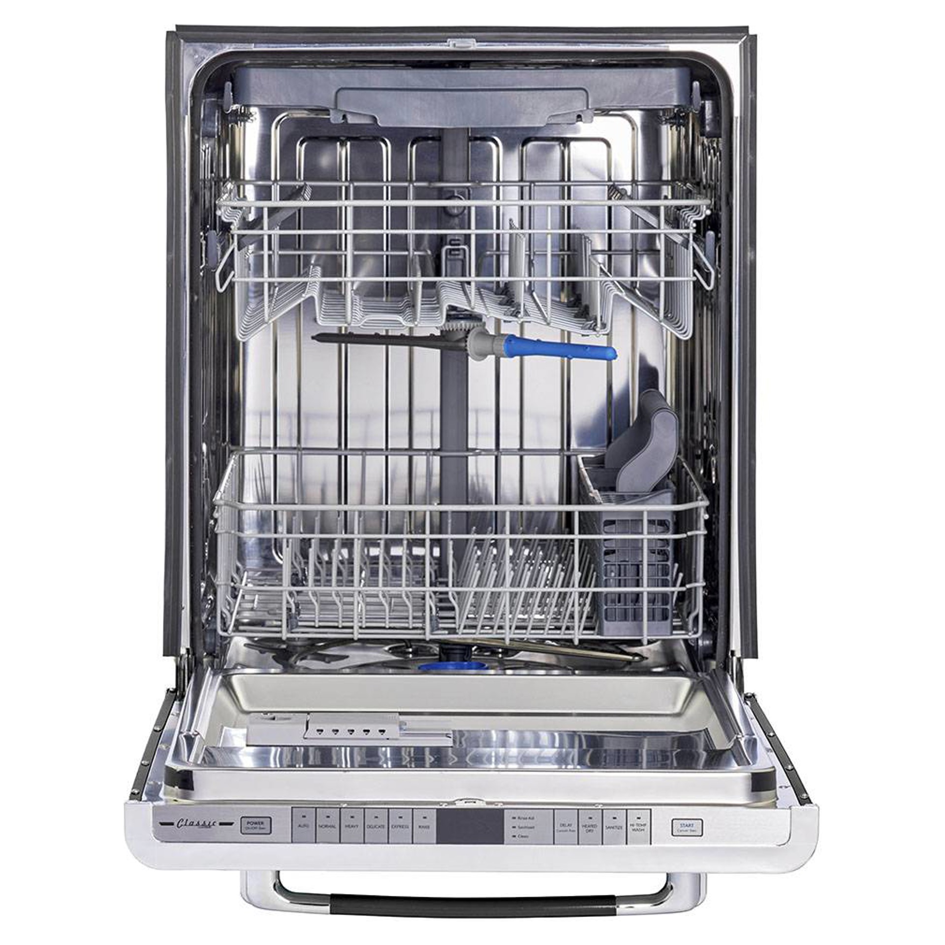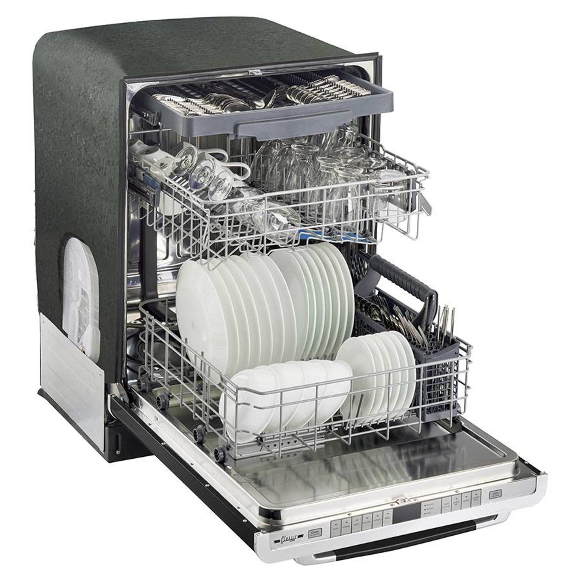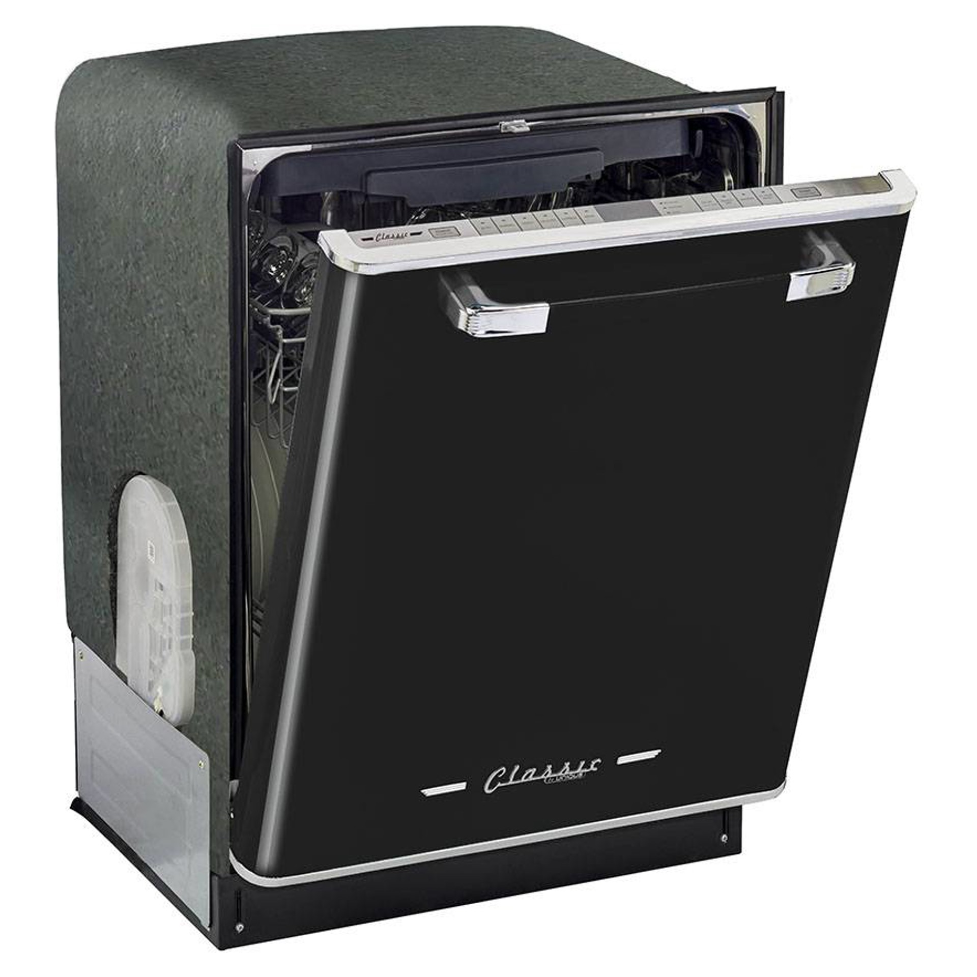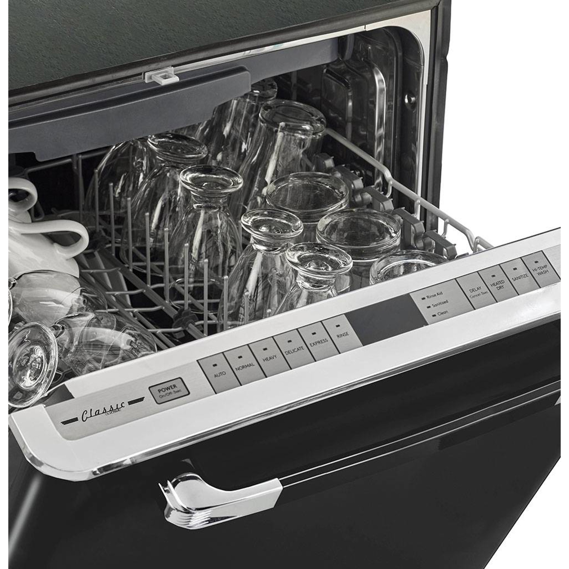 Le lave-vaisselle encastré Classic Rétro de 24 po d’Unique vous transporte dans les années 1950 avec son design rétro emblématique et ses garnitures chromées. Ce lave-vaisselle Unique est si silencieux que vous pourrez continuer de converser et oublier qu’il est en marche. Plusieurs cycles de lavage qui facilitent le nettoyage des petites et des grosses charges!