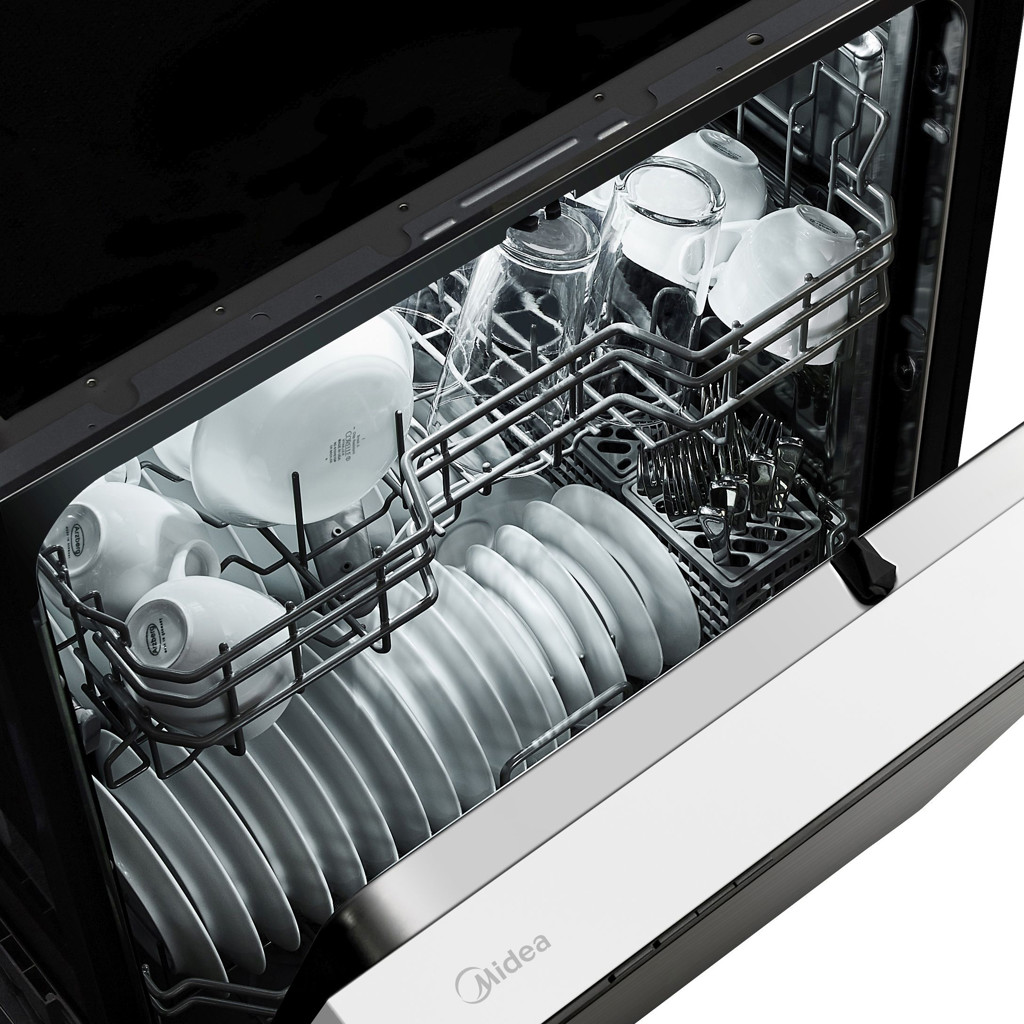 Le lave-vaisselle à cuve hybride de 24 po à commande frontale et à 2 paniers de Midea, offert excelle dans le nettoyage grâce à deux bras d’aspersion et à un panier à ustensiles à trois casiers permettant d’obtenir une vaisselle impeccablement propre et sèche.