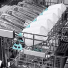 Nettoyez vos couverts, ustensiles et verres facilement, efficacement et en optimisant l'espace. Un système de lavage amélioré avec 3e panier offre un espace dédié aux couverts et ustensiles. Un espace pour les verres est également prévu, équipé de six buses rotatives pour éliminer les résidus en profondeur.