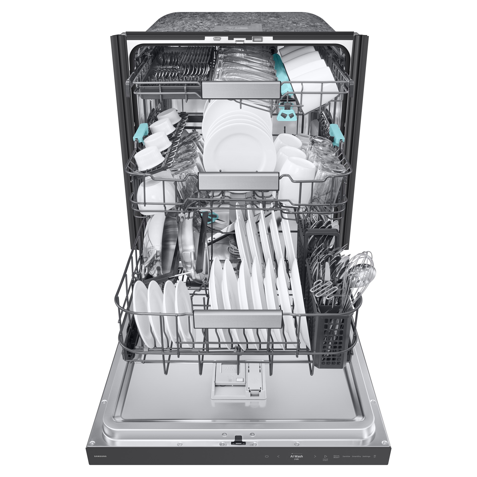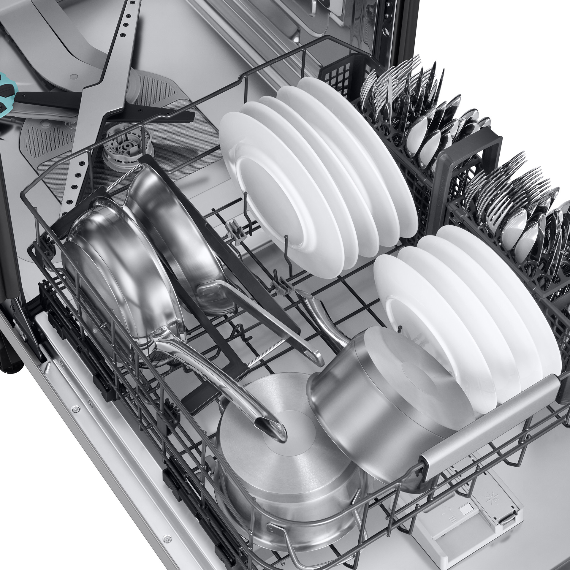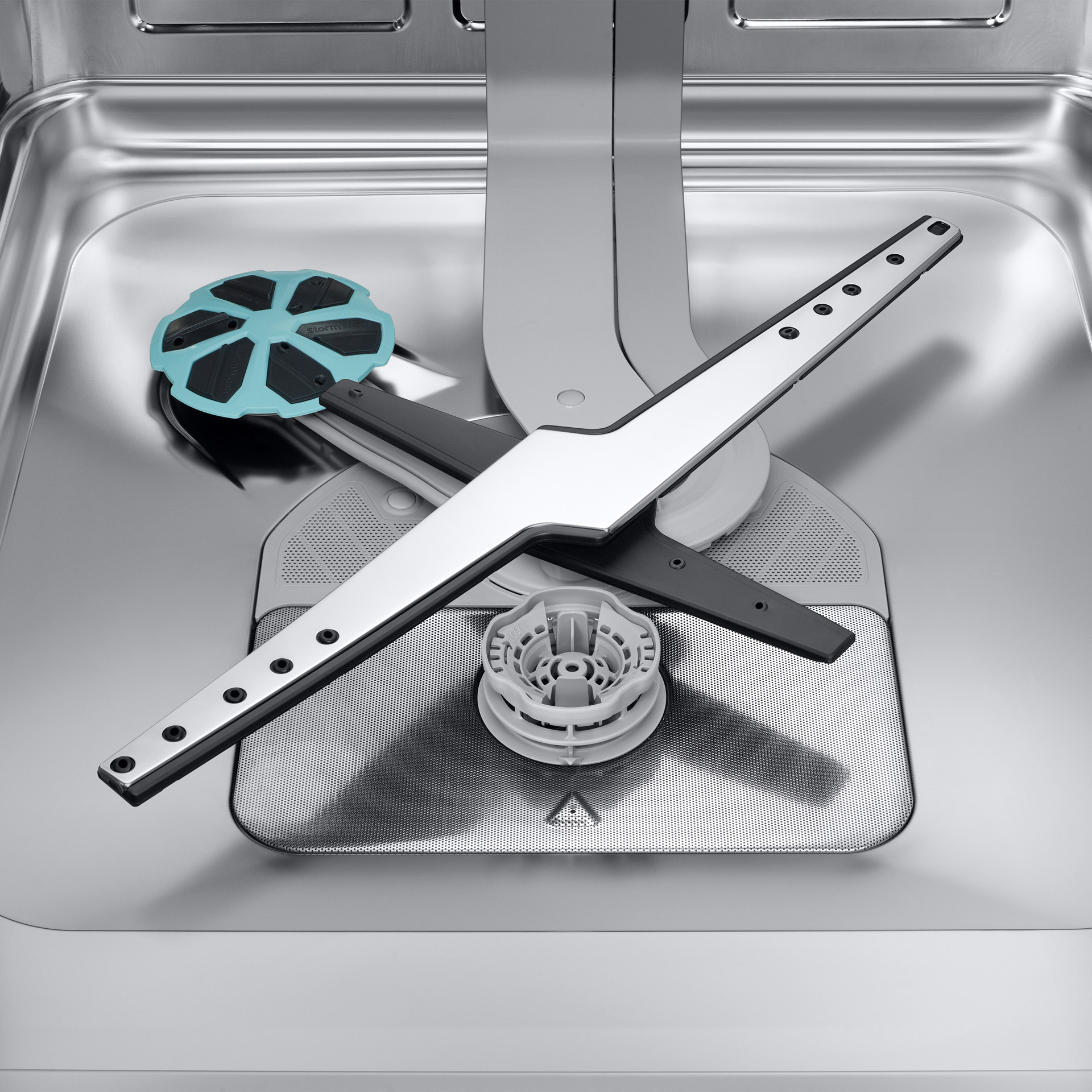 Nettoyez les casseroles, poêles et plats très sales. StormWash+™ offre une performance de lavage intensive. Un jet circulaire couvre une zone plus large et projette l'eau sous différents angles. Un nouveau support de casserole renforce la puissance du jet de lavage. Deux bras de lavage assurent un lavage rapide et efficace.