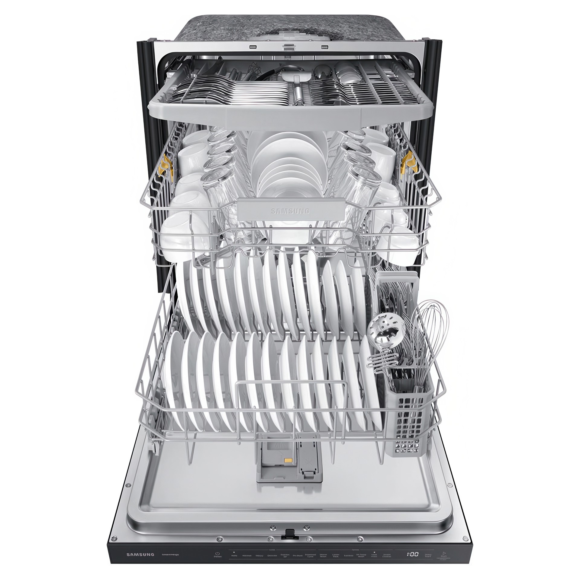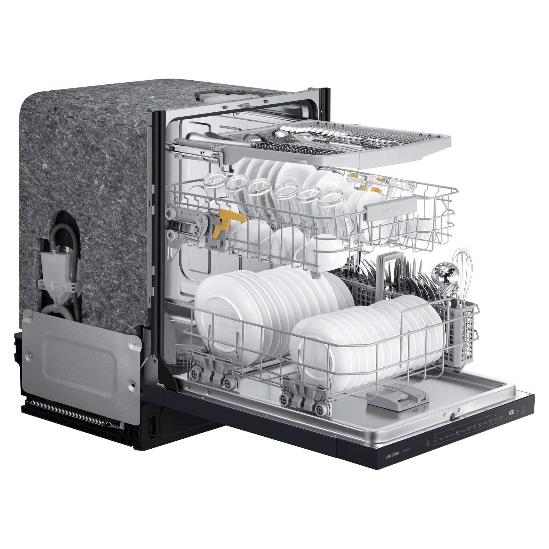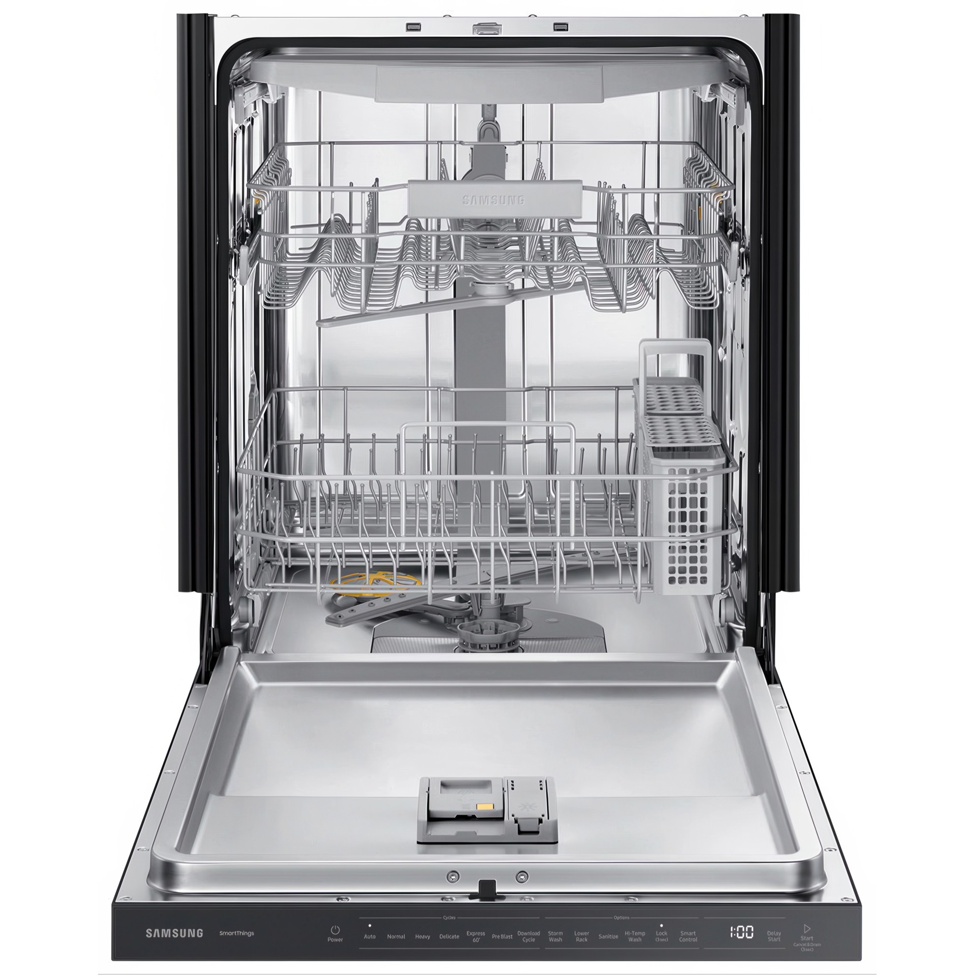 Téléchargez 4 cycles supplémentaires avec votre smartphone sur l'application SmartThings : « Plastique » pour minimiser la déformation, « Casseroles et poêles » pour nettoyer les articles plus sales, « Baby Care » pour nettoyer les biberons de votre bébé et le cycle « Nuit » pour un lavage encore plus silencieux.