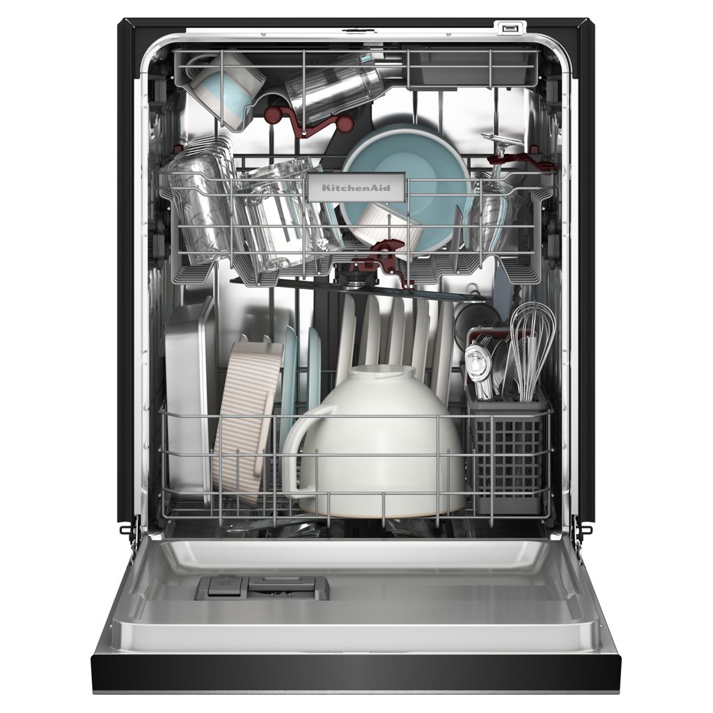 Le panier de troisième niveau avec lavage à jets peut accueillir des tasses supplémentaires et 3 bols, sans compromettre l’espace en dessous. Le panier intermédiaire réglable peut accueillir des articles hauts comme un bol de batteur sur socle. Et le panier inférieur peut accueillir des articles volumineux et surdimensionnés comme les plats à gratin et les grandes plaques de cuisson.