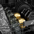 Signature JennAir®, ces supports noirs spectaculaires s'inspirent de la beauté du verre volcanique, mettant en valeur la vaisselle propre dans un contraste saisissant.
