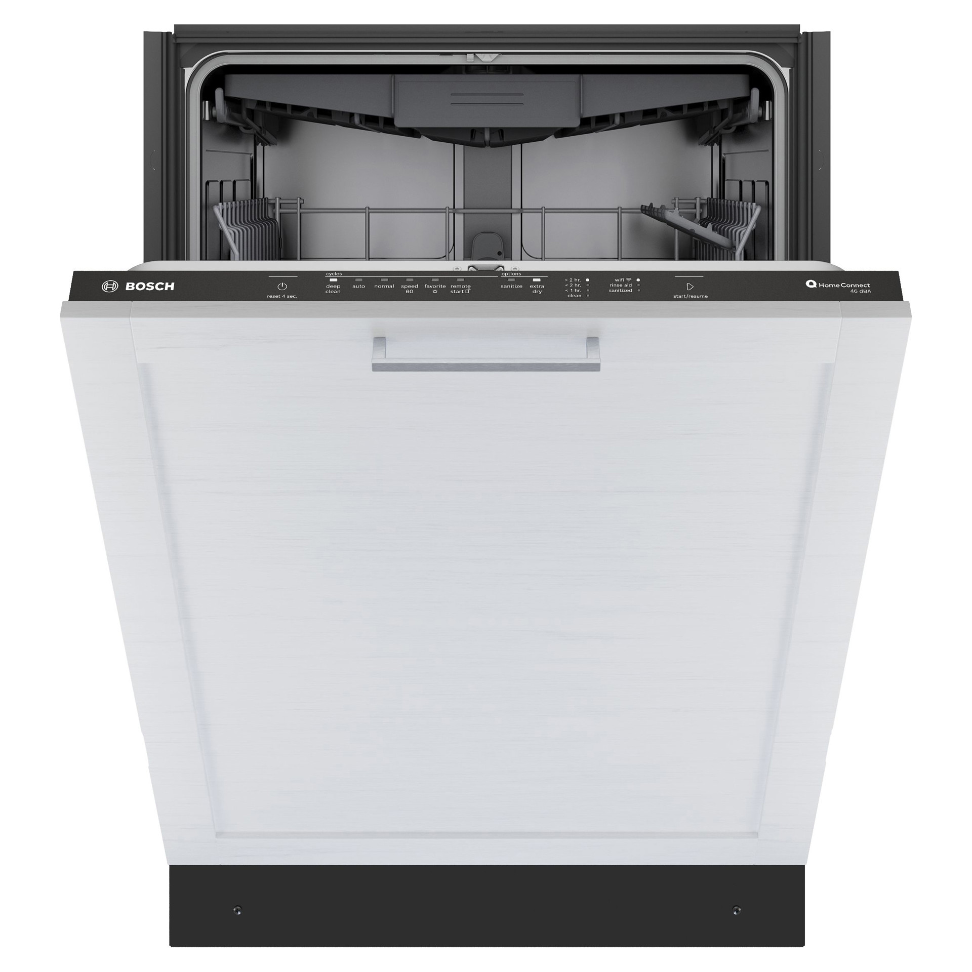 Il dispose de cinq cycles de lavage et de trois options, ainsi que de deux cycles et options supplémentaires accessibles via l'application Home Connect. Il est également doté de la technologie PrecisionWash, qui utilise des capteurs intelligents et des bras gicleurs pour cibler chaque article de chaque charge pour des performances de nettoyage optimales.