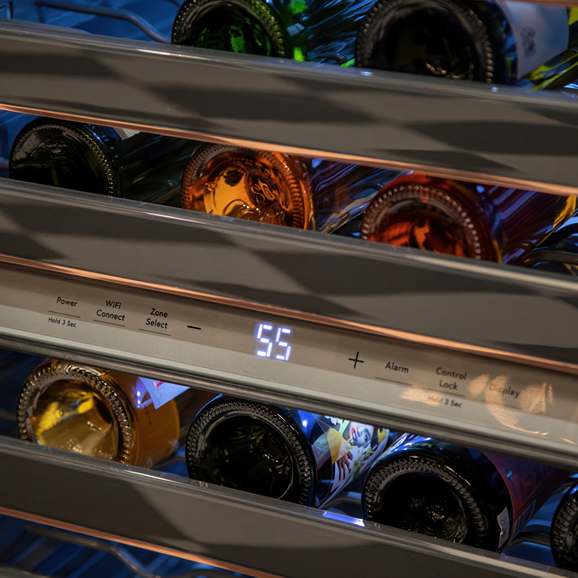 Ce cellier comprend deux zones distinctes qui maintiennent toute température comprise entre 41 et 61 degrés Fahrenheit, ce qui vous permet de conserver les vins rouges et blancs à la température de service idéale.