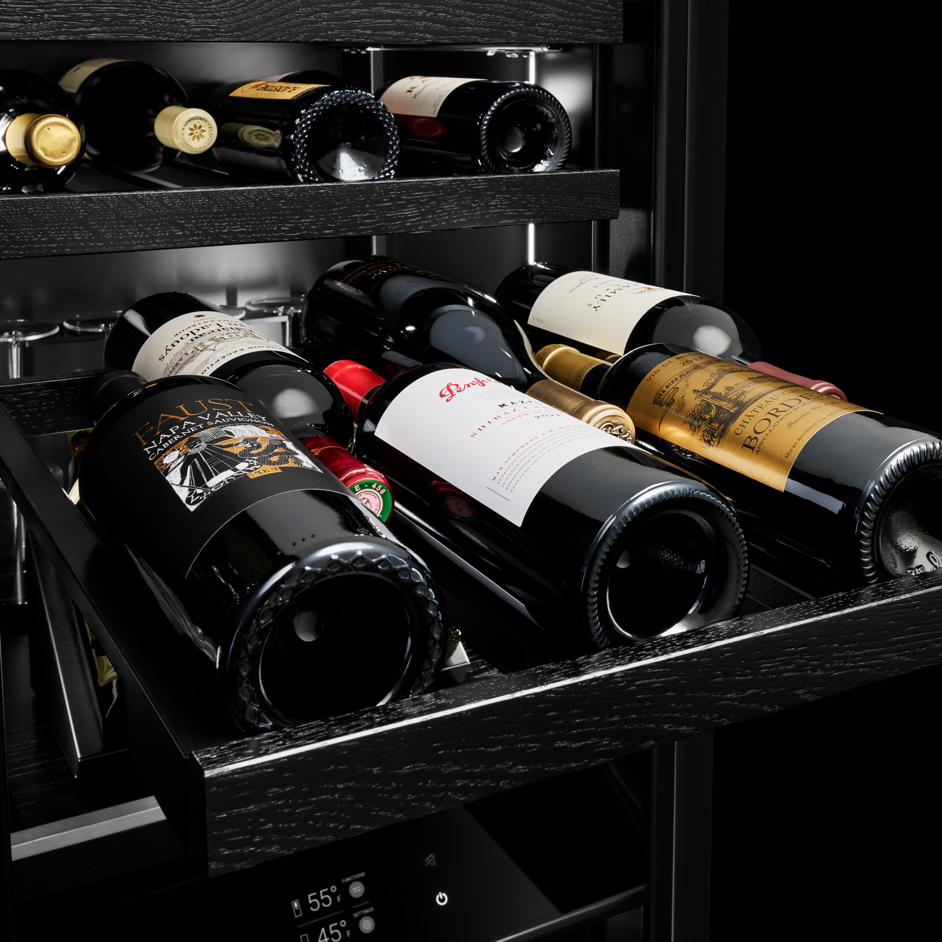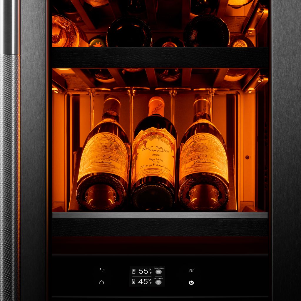 Attirez l'attention sur votre collection de vins dans un style très contrast. Inspirée du verre volcanique, cette finition foncée exclusive foncée exclusive à l'industrie permet de présenter les vins comme des oeuvres d'art.