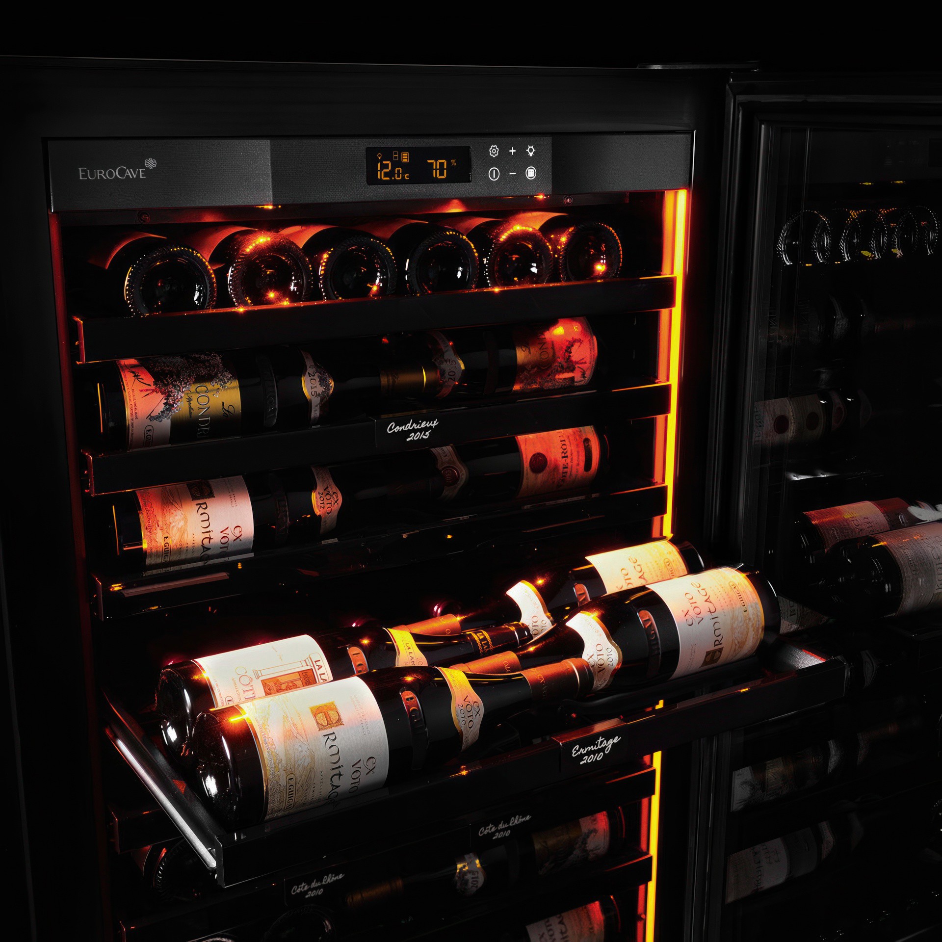 L’obscurité : Les rayons ultraviolets (UV) présents dans la lumière naturelle et artificielle sont néfastes pour le vin. C’est pourquoi EuroCave vous proposes des portes pleine ou encore vitrée double anti-UV pour la protection de vos bouteilles.