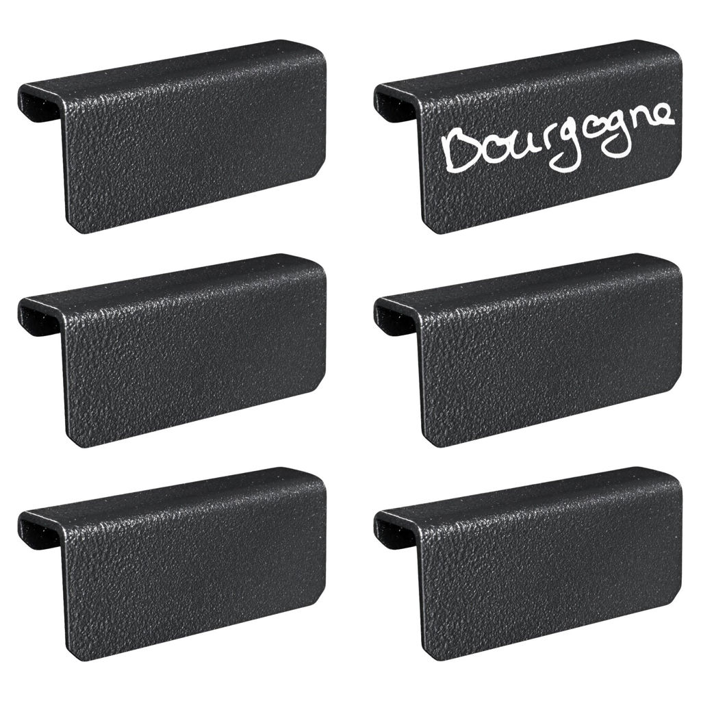 Six plaques amovibles pour identifier vos bouteilles de vin. Compatible uniquement avec les clayettes coulissantes et de rangement de la gamme Révélation.