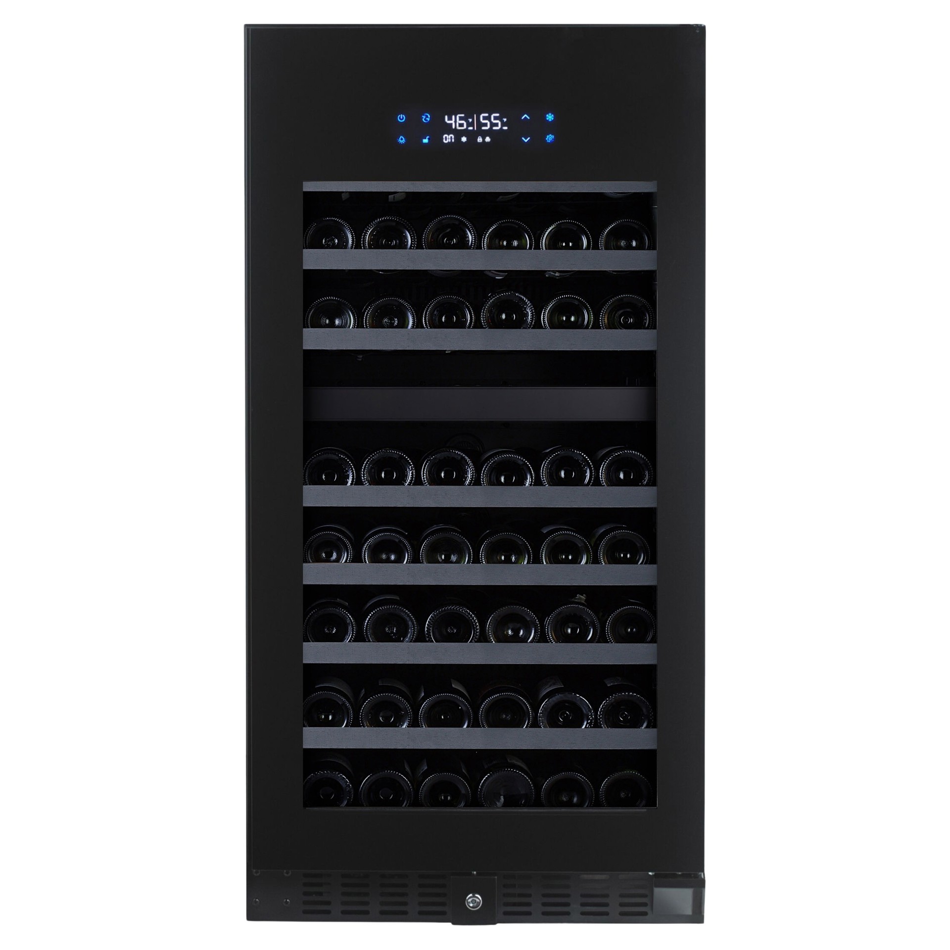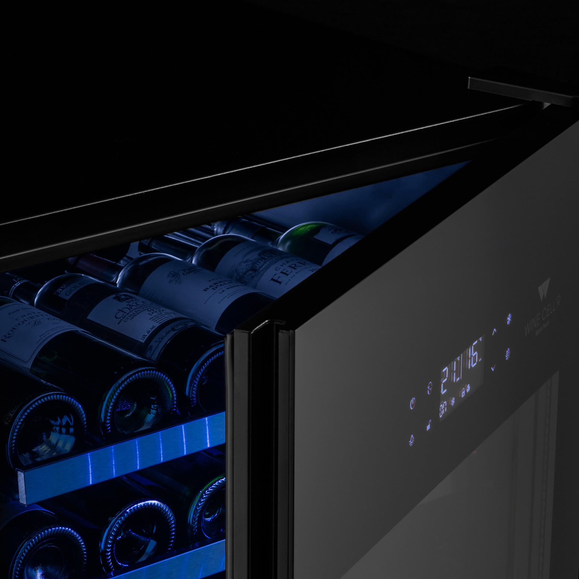 Doté de 8 clayettes coulissantes sur roulement à billes, d’un filtre à charbon actif pour préserver l’environnement intérieur, d’une serrure de sécurité et d’un panneau de contrôle électronique directement sur la porte, ce cellier allie esthétique, confort et sécurité.