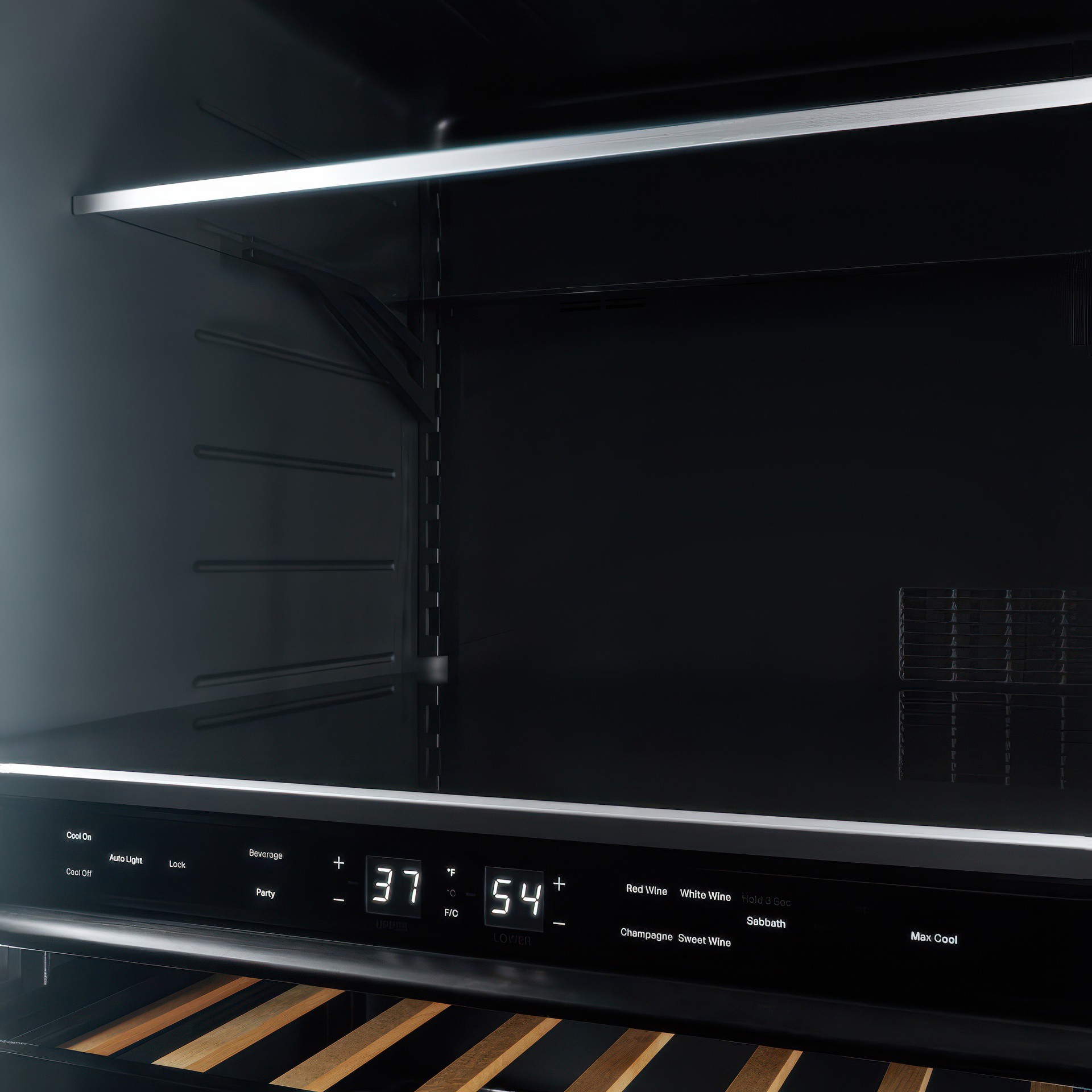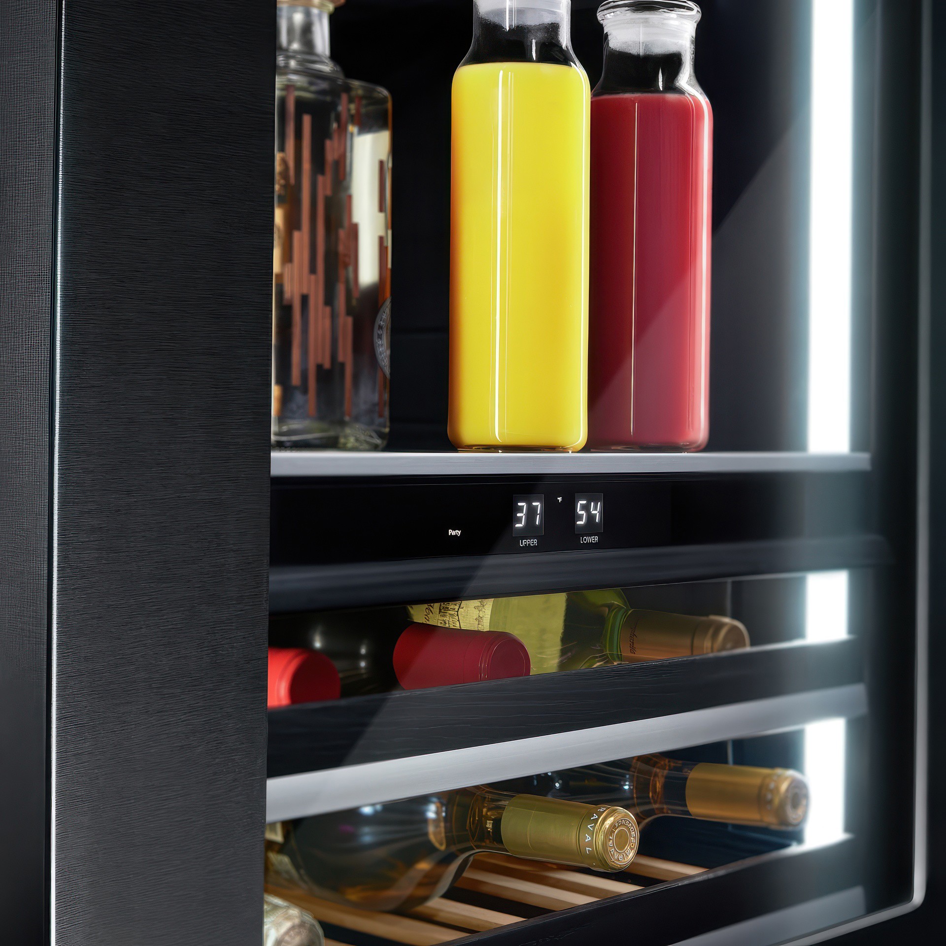 Laissez de la place aux plaisirs interdits. Chaque délicieux morceau est parfaitement conservé derrière une porte thermique en verre, sur une tablette en verre solide et baigne dans une douce lumière à DEL. Les rafraîchissements; liquides ou autres, sont maintenus à la température idéale.