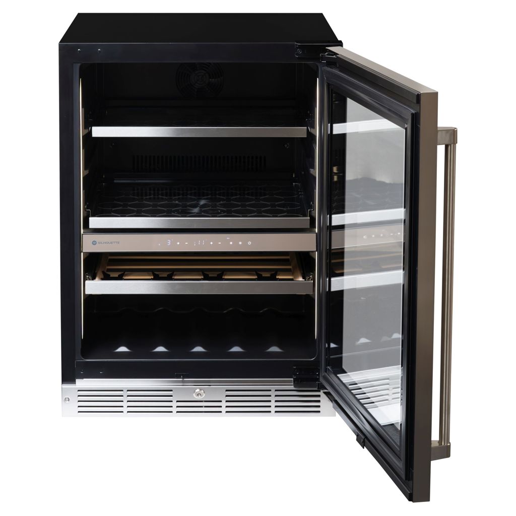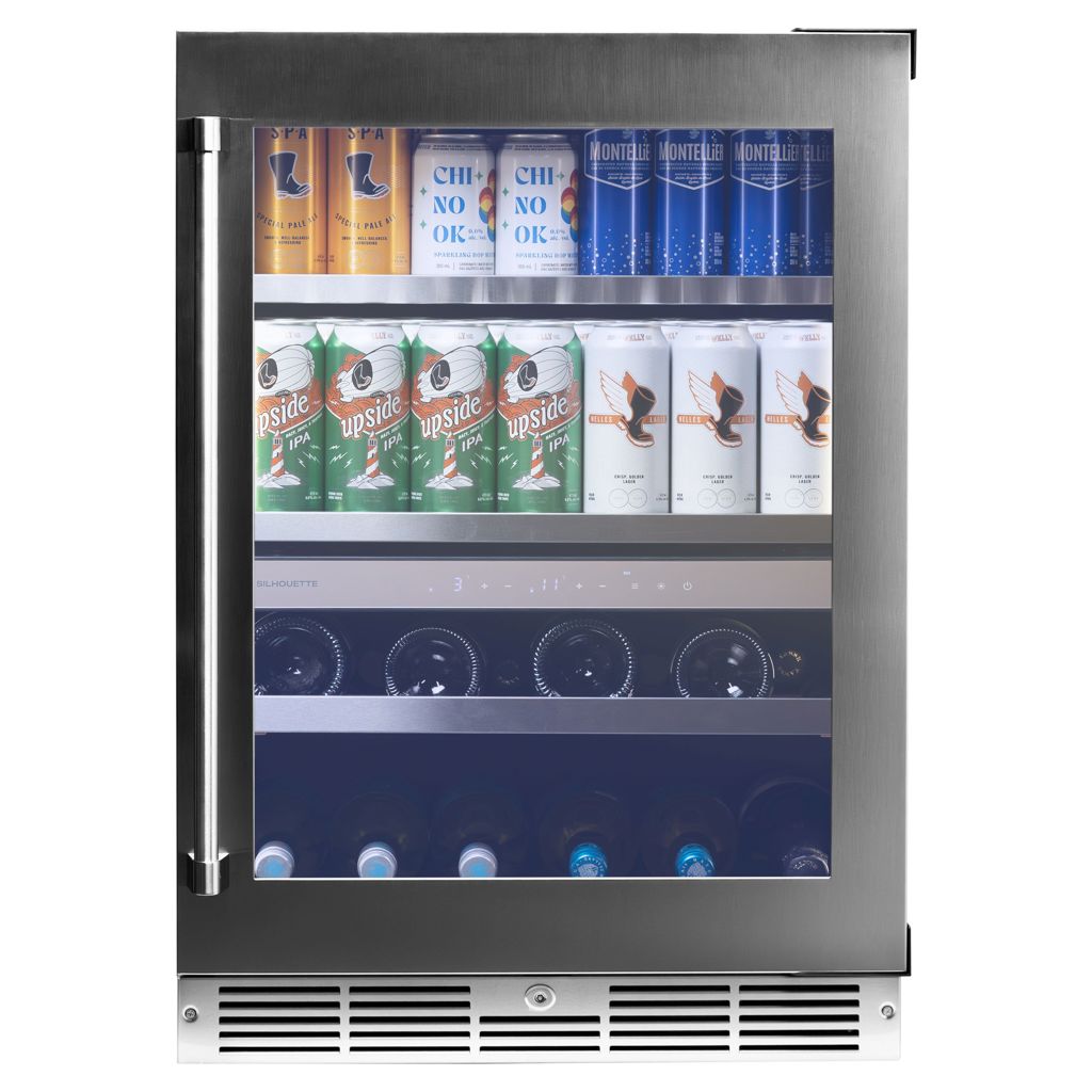 Présentation du centre de vin et de boissons intégré Silhouette Pro Gen 3 – SPRWBC052D3SS de 24 po en acier inoxydable, une fusion parfaite de forme et de fonction. Cet appareil élégant peut stocker jusqu'à 79 canettes de boisson et 19 bouteilles de vin de Bordeaux standard, ce qui le rend idéal pour les réceptions.