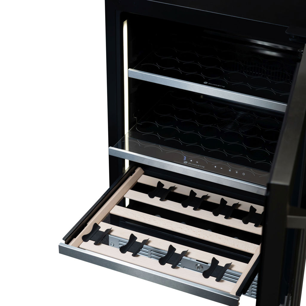 La conception à deux zones permet un contrôle précis de la température, la zone supérieure allant de 34 °F à 50 °F et la zone inférieure de 50 °F à 64 °F, garantissant que vos boissons sont toujours à leur température optimale.