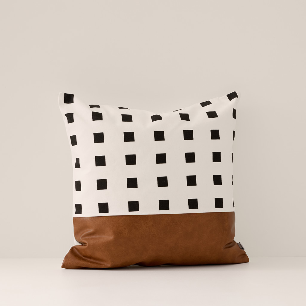 Magnifique coussin Leather Stripe 18" x 18" en tissu 100% Coton / Vinyle avec une bourrure de fibre. Fermeture éclair de couleur assortie, résistant et durable.