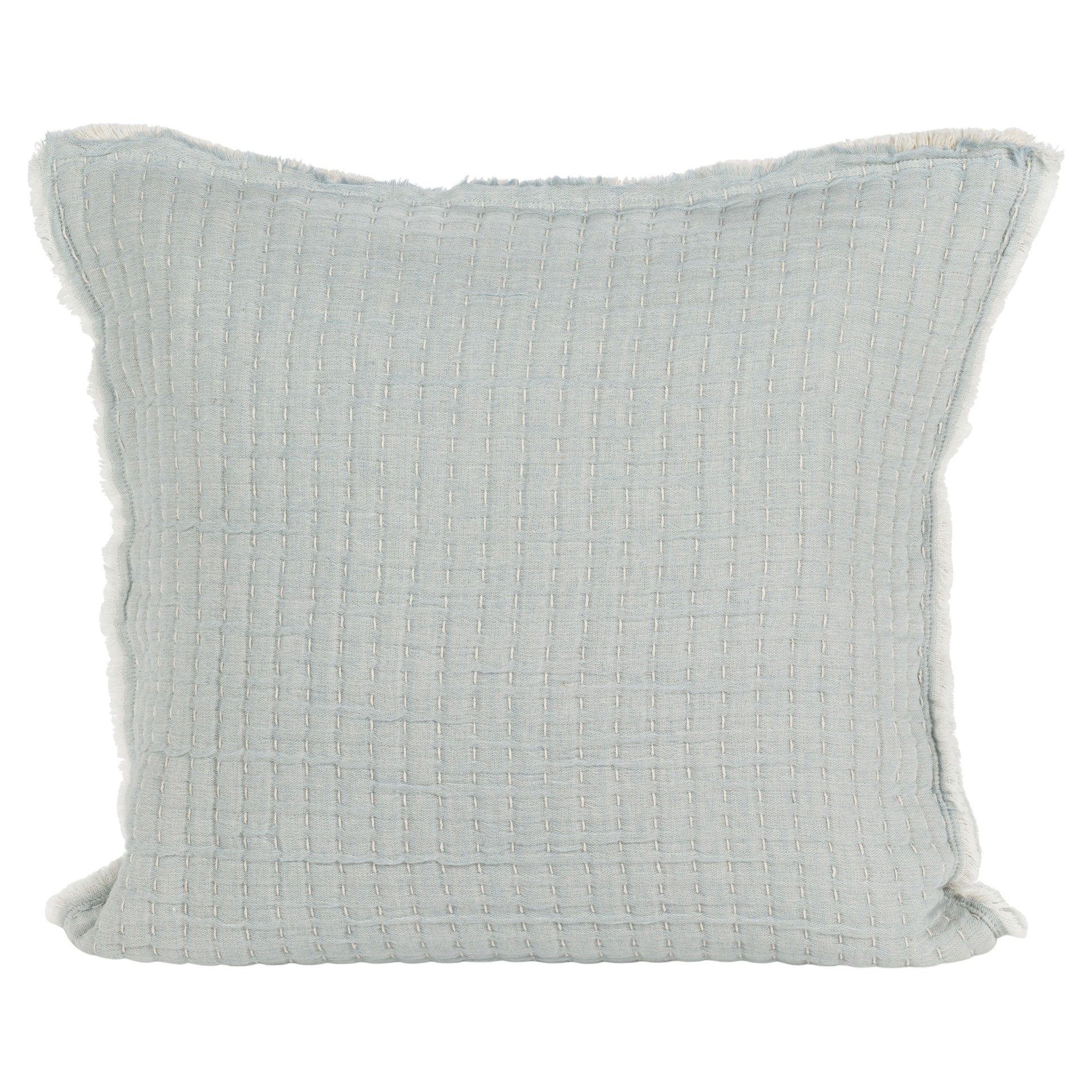 Apportez une touche artisanale à votre décor avec ce coussin carré en coton. Son tissu bleu est sublimé par des surpiqûres inspirées de la technique kantha, offrant une texture unique. Parfait pour enrichir un intérieur moderne ou créer des superpositions chaleureuses.
