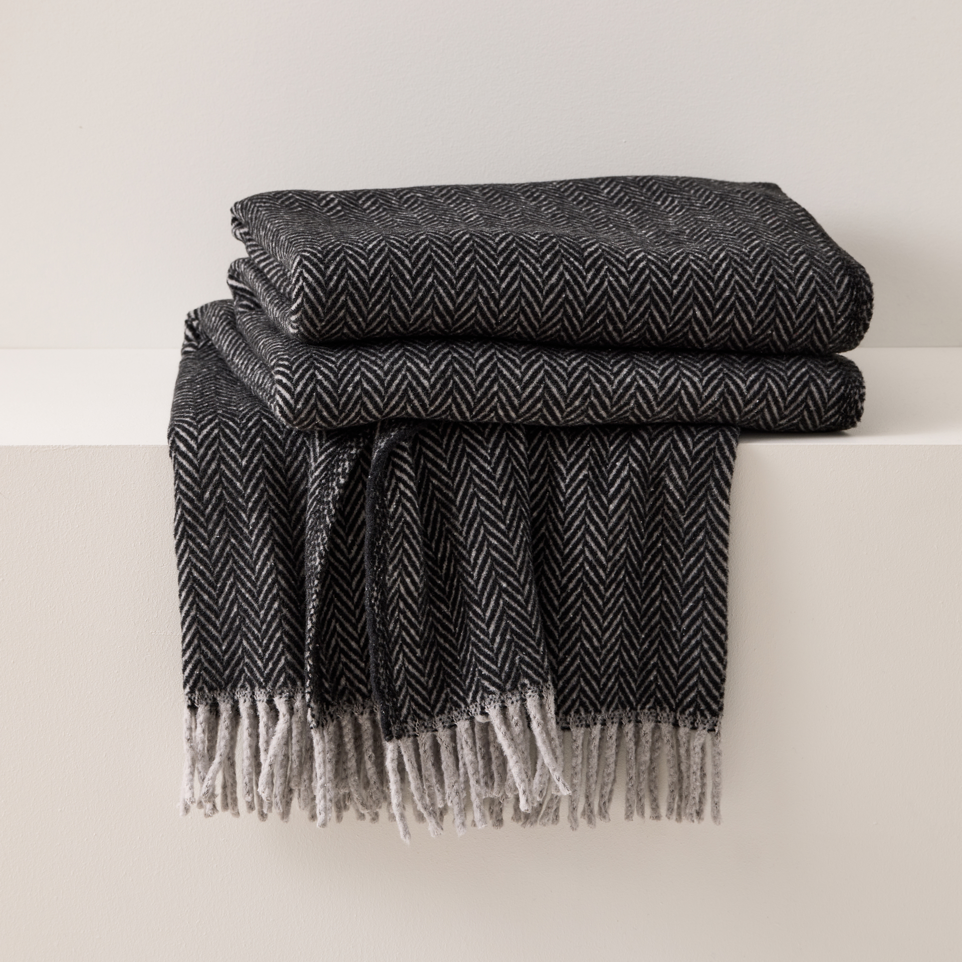 La mesure est 55 x70 po et le partage de fibres est 50% coton et 50% acrylique.