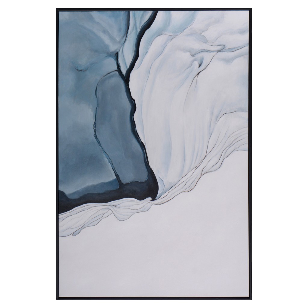 Cette œuvre fascinante évoque la beauté des formations naturelles avec ses nuances subtiles de bleu ardoise et de blanc pur. Ses courbes organiques créent un mouvement fluide qui capte le regard tout en diffusant une sérénité profonde.