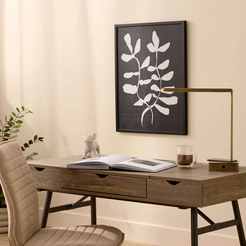 La silhouette organique des feuilles stylisées apporte une touche de fraîcheur tout en conservant une sophistication moderne. Parfaitement encadrée, cette pièce s'intègre harmonieusement aux intérieurs contemporains et minimalistes.